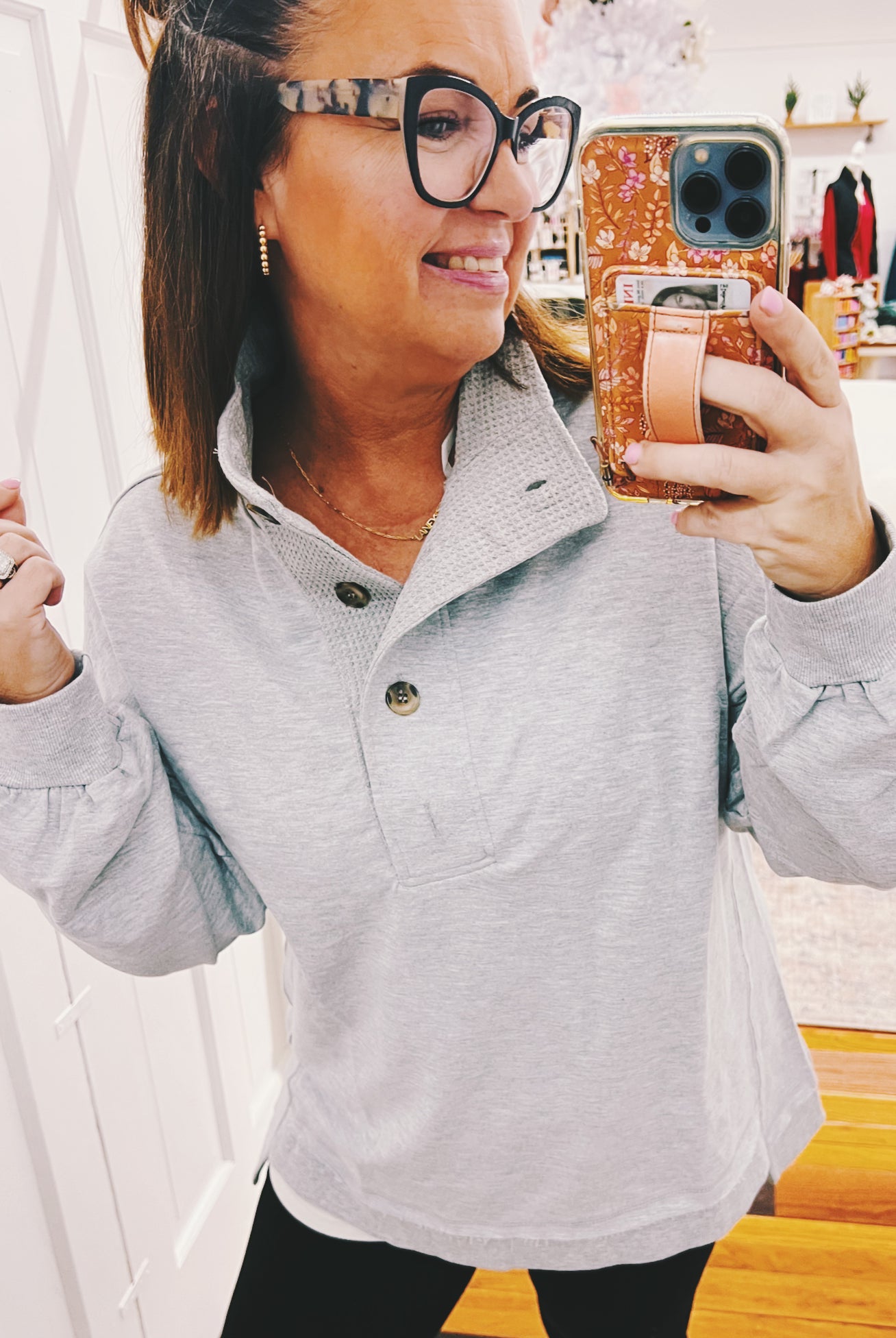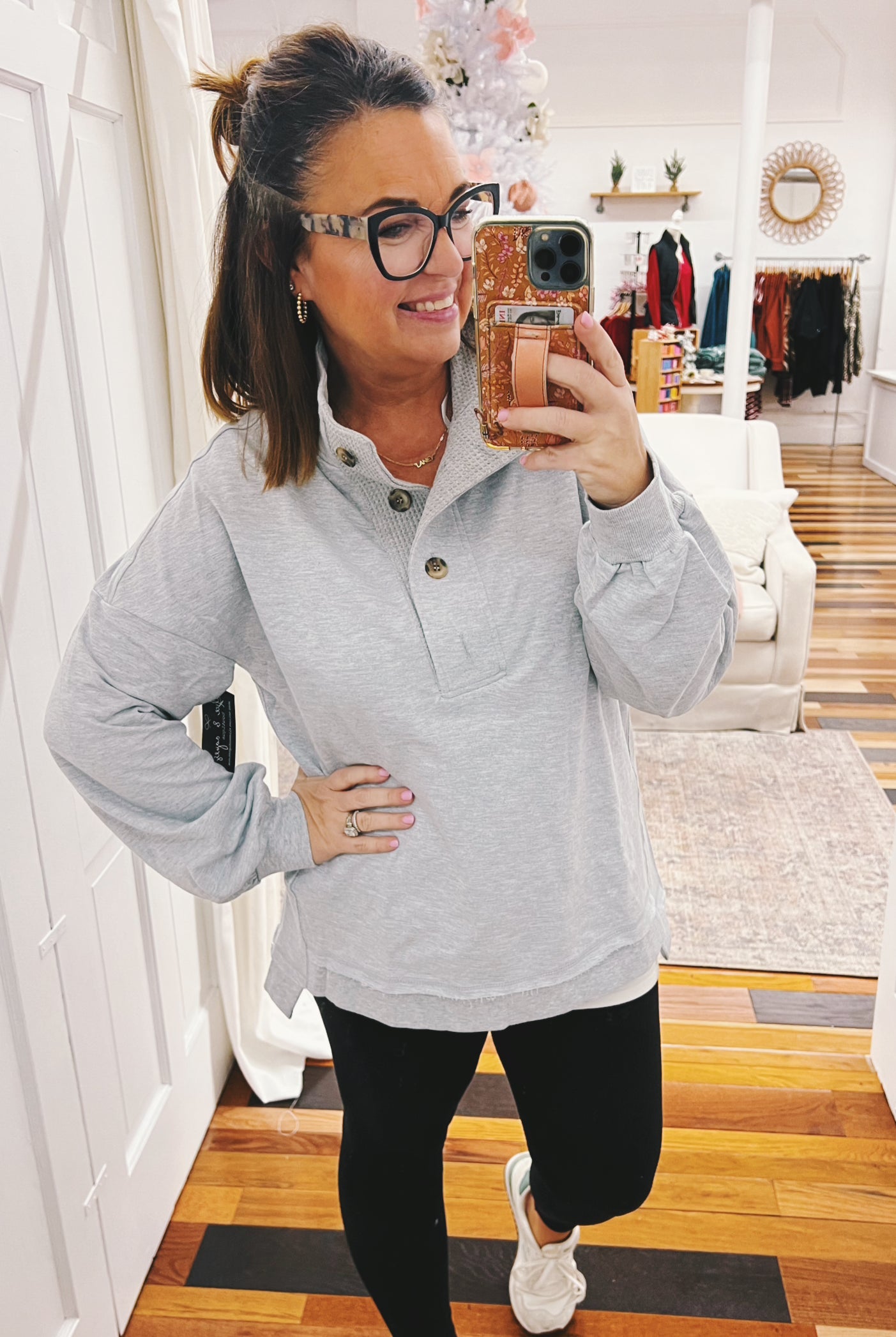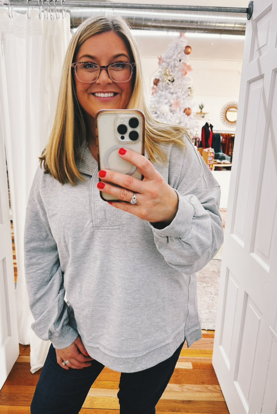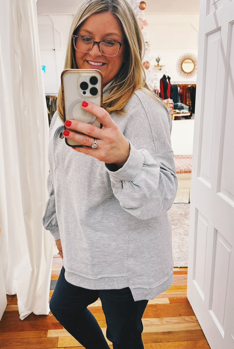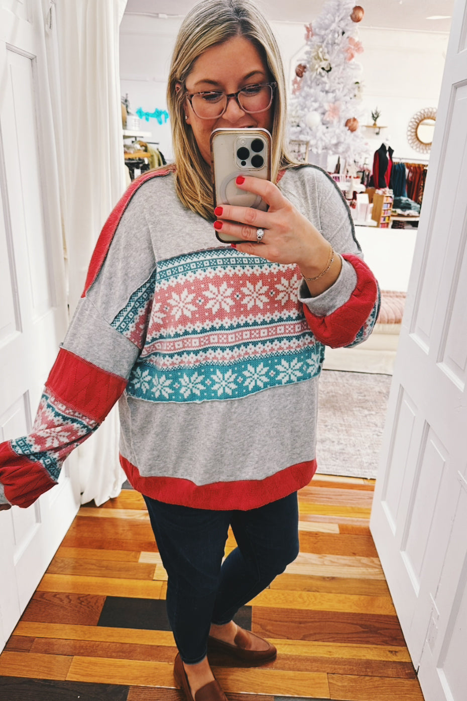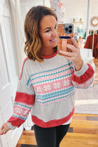 Wrap yourself in winter magic with the Noreen Snow Flake Pullover, your new go-to for chilly days. Featuring a playful snowflake design in cheerful coral, teal, and heather gray, this slouchy pullover is crafted from soft brushed knit that feels like a cozy hug. The relaxed fit makes it perfect for layering or wearing solo—ideal for everything from holiday gatherings to lazy weekends. Cute, comfortable, and undeniably snuggly.