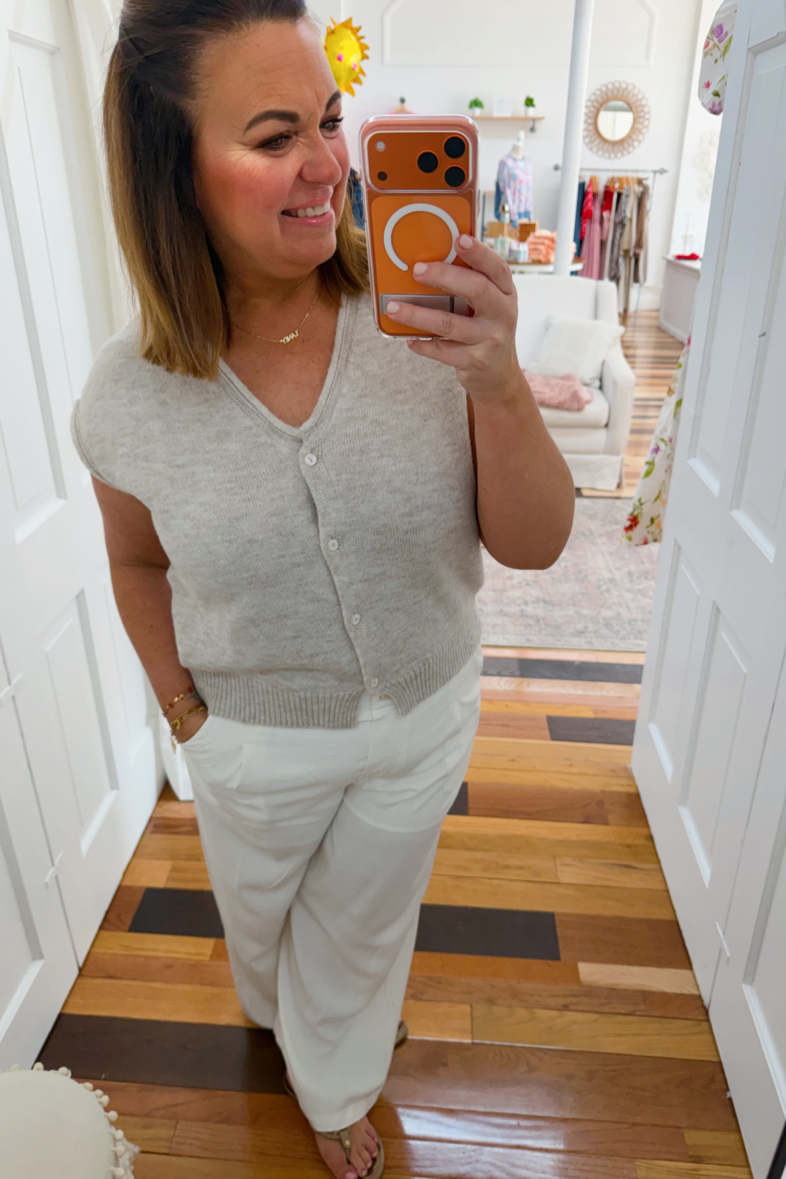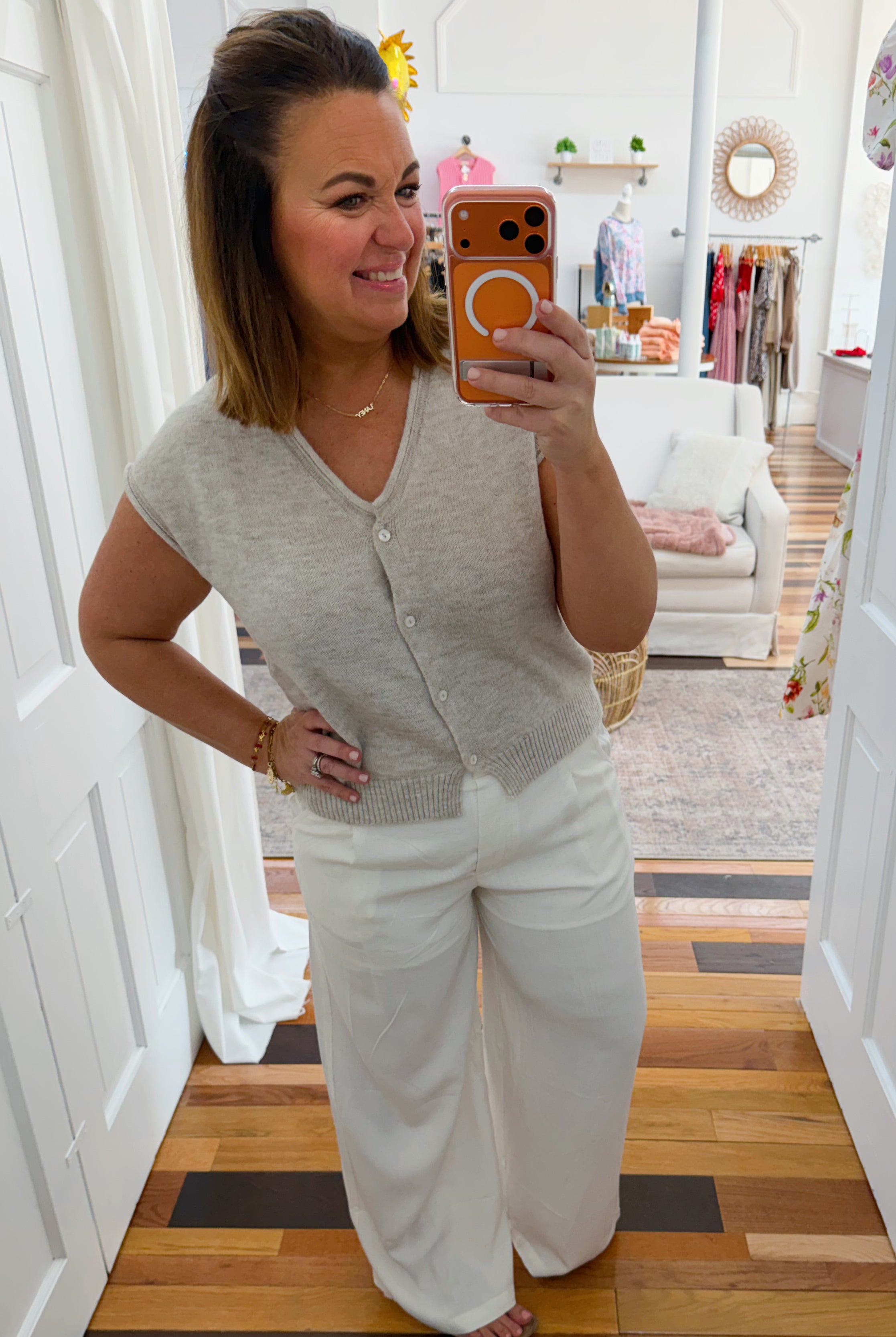 - Laney is wearing a M and is a 36D/8-10