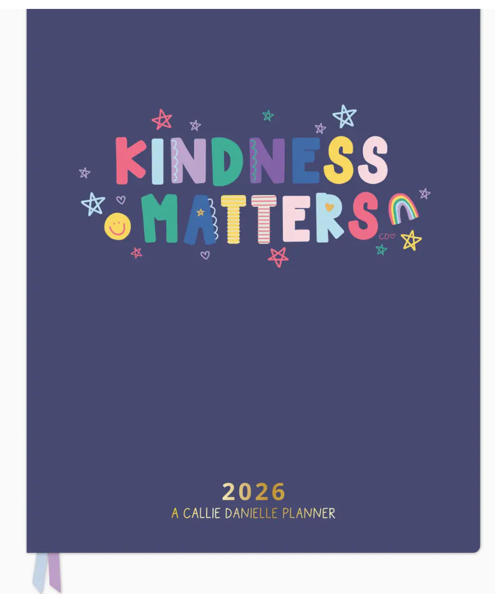 Laney's absolute favorite!! Stay organized and spread positivity all year long with the 2026 Planner! This dated 8.5x11” planner features a vibrant hand-lettered cover, stitched binding that lays flat, and thoughtful touches like gold foiling and two ribbon bookmarks. Inside, you’ll find monthly and weekly spreads with space for notes, to-do lists, and trackers for meals, fitness, and hydration—plus bonus pages for goals, important dates, and even monthly coloring!
