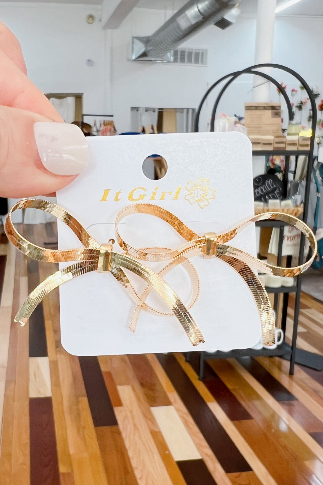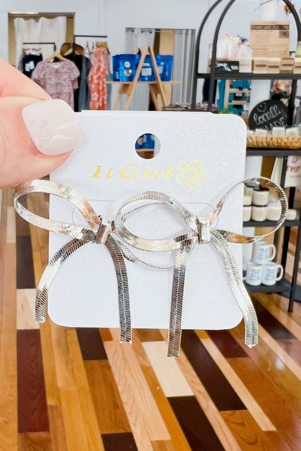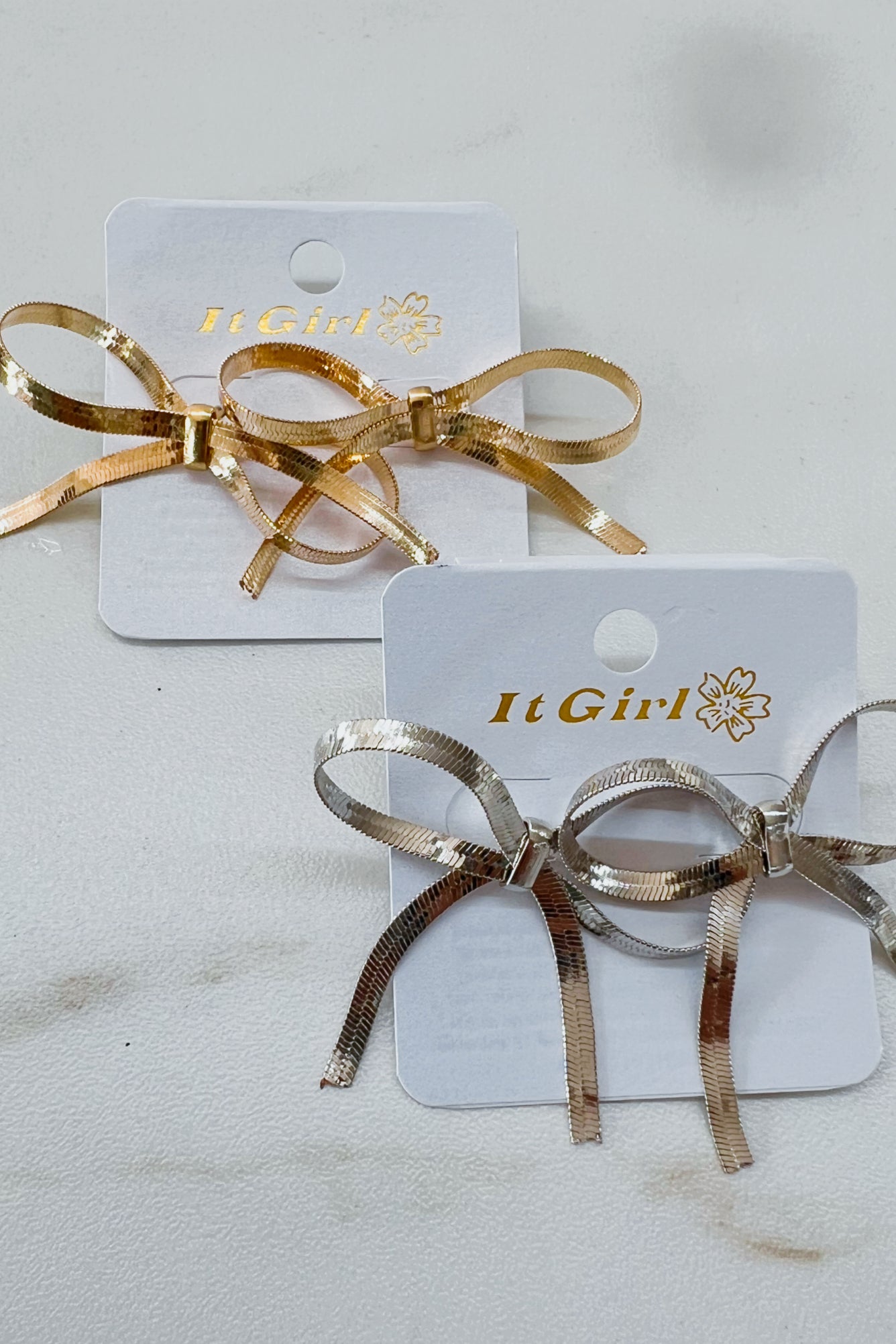 Add a touch of playful elegance to any outfit with our Tassel Bow Earrings. Featuring a trendy bow made from herringbone chain, these earrings are the perfect accessory for anyone looking to add a bit of quirky charm to their look. (Hurry and grab a pair, they're all the rage!)