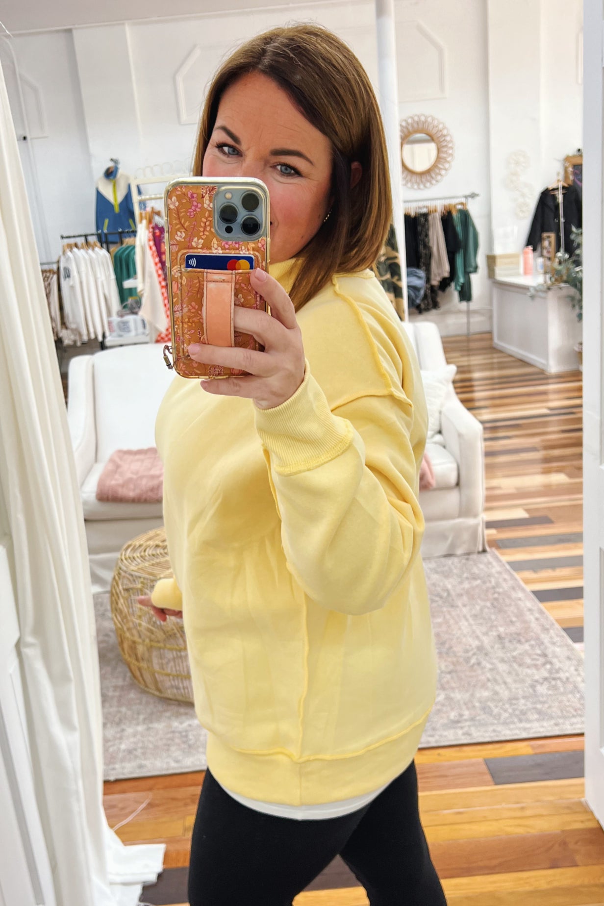 The Betsy Mock Neck Sweatshirt wraps you in super soft fleece that feels like a warm hug, while the reversible design means two looks from one piece. Those edgy exposed seams? Pure trend-forward style that keeps things fresh. Slip it on for instant cozy-and-comfy vibes—whether you're working from home, running errands, or just existing in maximum comfort mode. This is the must-have piece that actually earns its spot in your rotation.