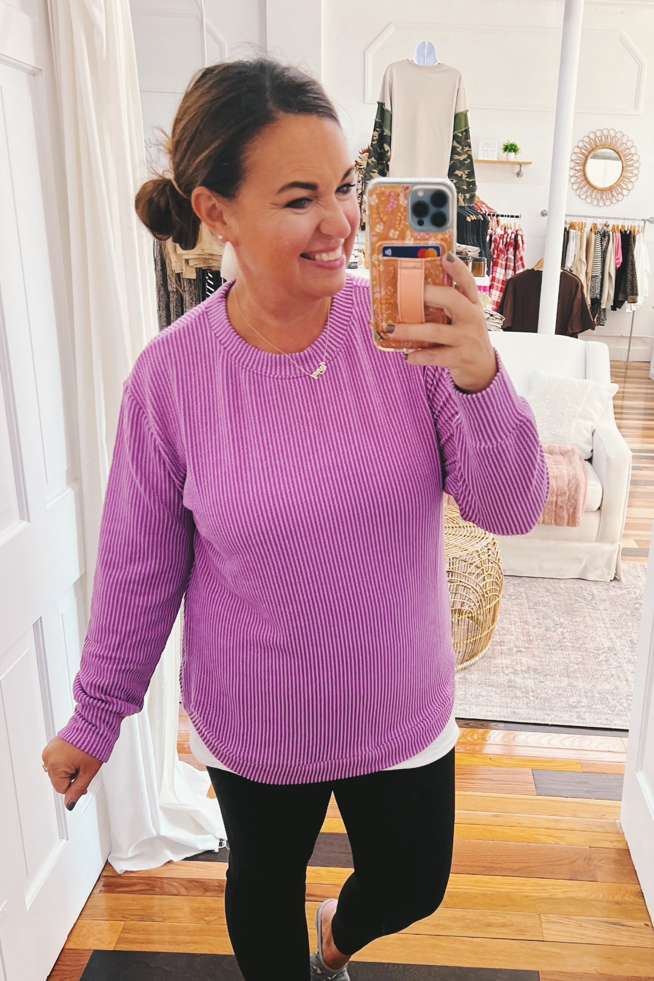 This Karla Ribbed Dolphin Hem Top in Blue is the perfect addition to your wardrobe! Its long sleeve design and ribbed knit material provide both comfort and style. The dolphin hem and longer length make it perfect with leggings, while the slimmer relaxed fit is key for layering. This top is a must have!!
