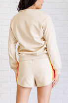Unleash all the retro vibes with our midweight knit Rylie Retro Rainbow Shorts Set in Tan. Featuring a raglan sleeve and round neckline, the top is not only stylish but also comfortable. The fashionable shorts feature banded ribbed details and an elastic waistline. The functional side pockets add a convenient touch, while the contrasting striped applique is sure to turn heads!
