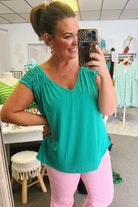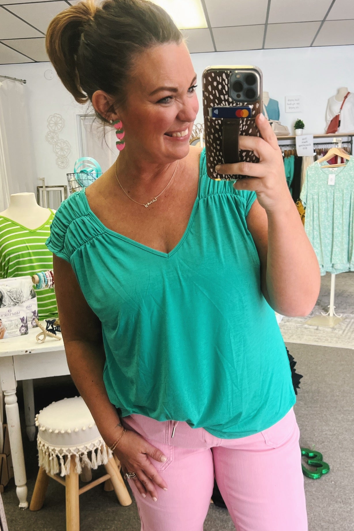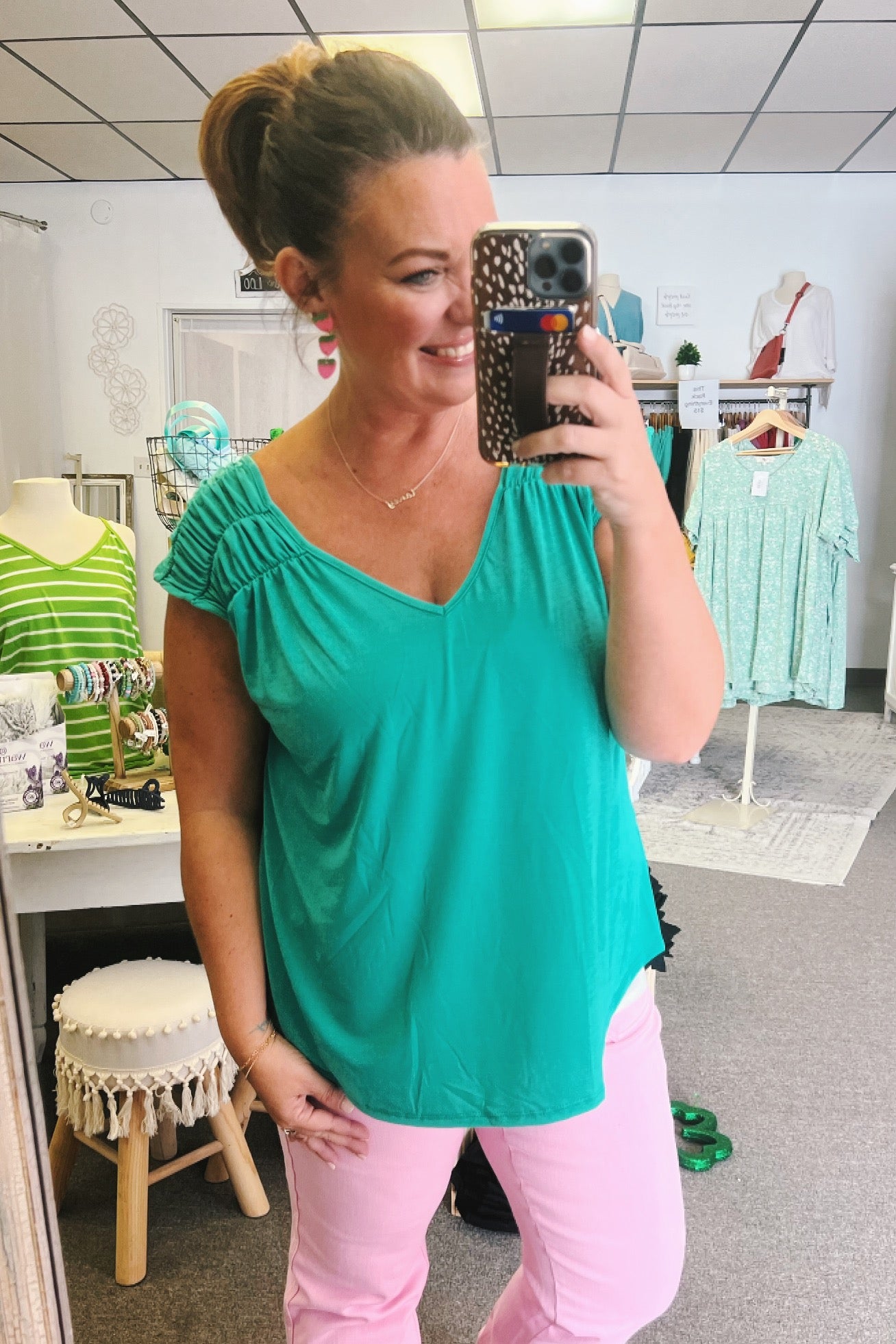 Rhonda Ruched Cap Sleeve Top in Emerald