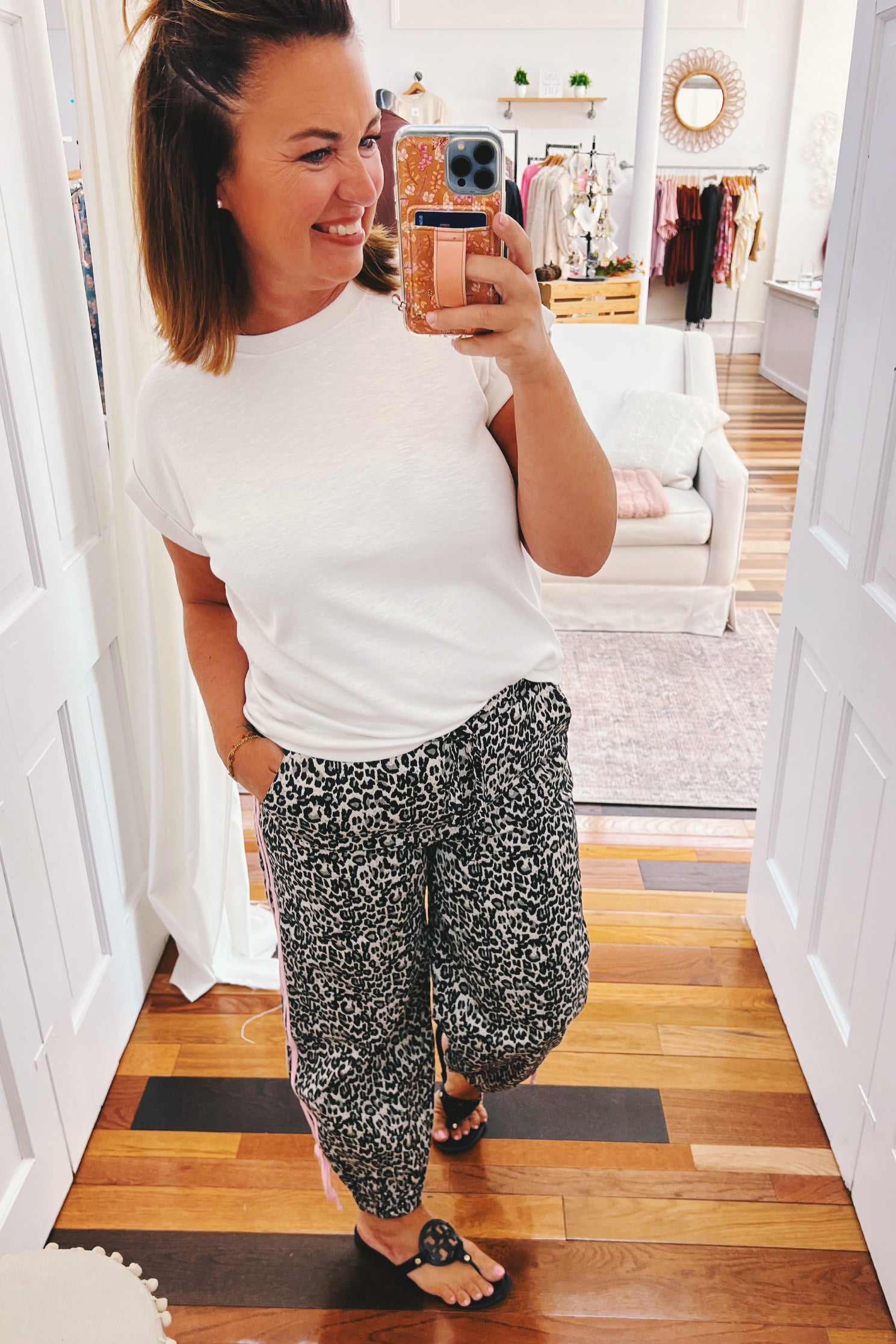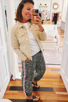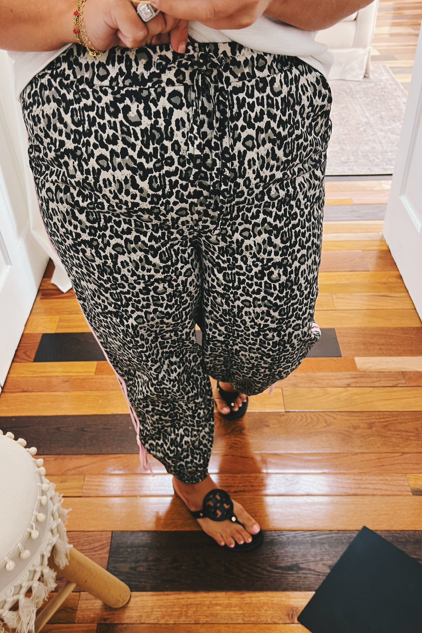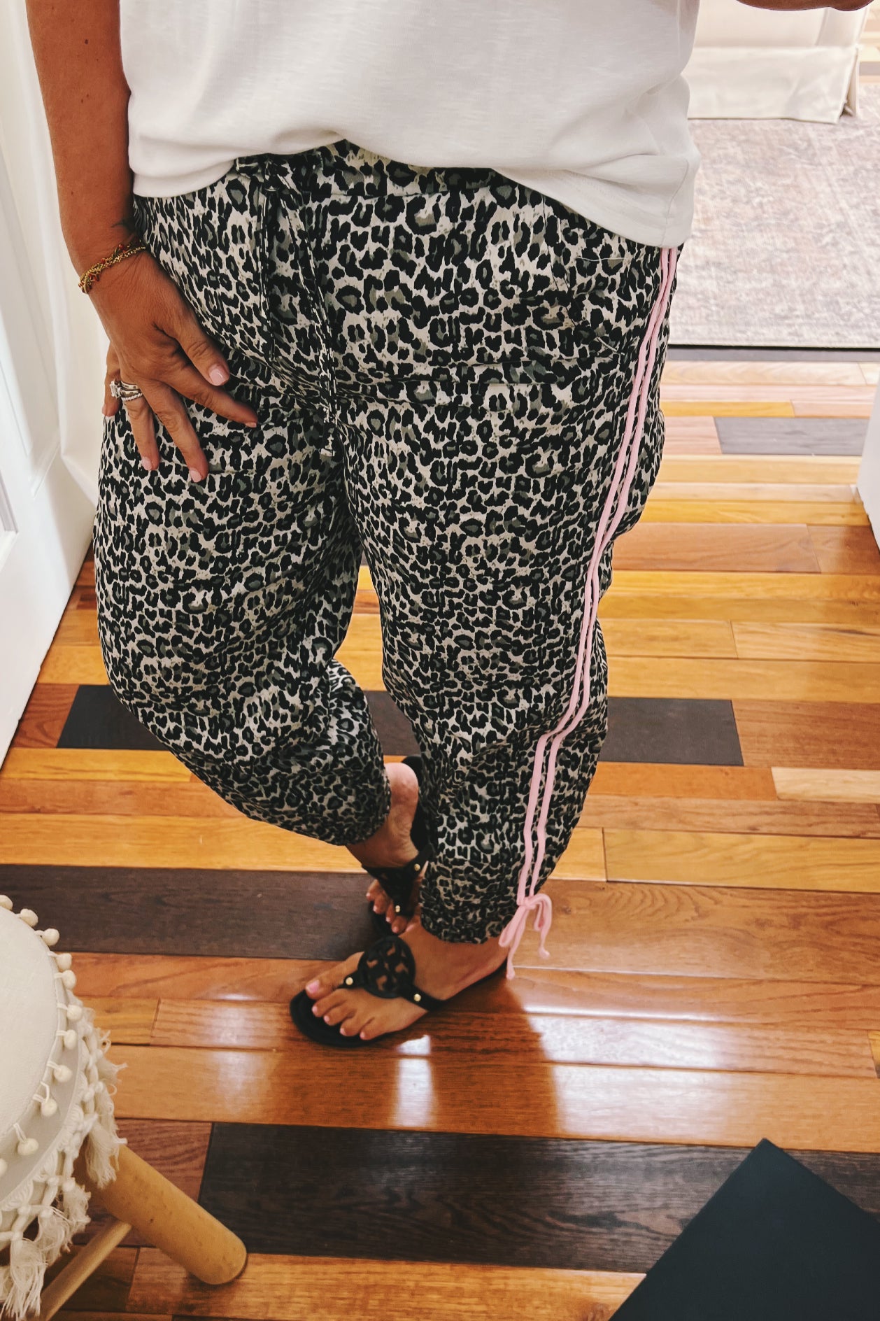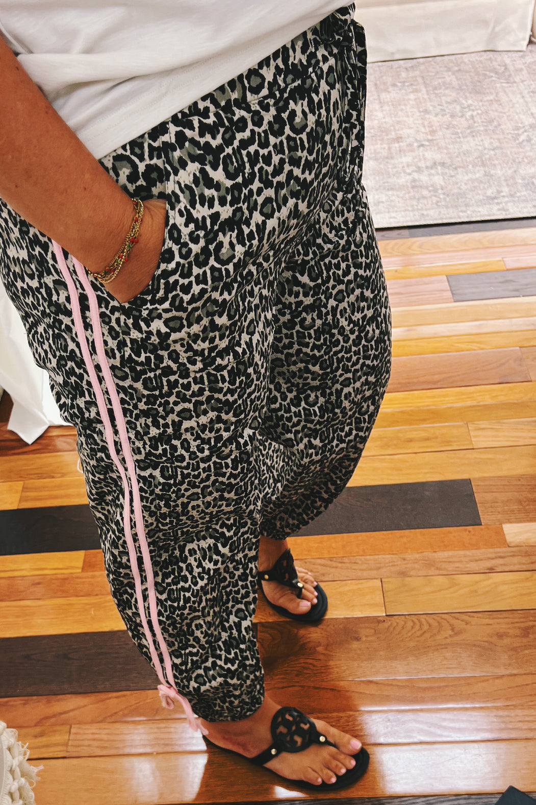 Stay comfy and cute in the Blythe Leopard Jogger Pants, featuring an oversized fit with taupe, black, and gray leopard print accented by a playful pink stripe. With an elastic waist and drawstring for the perfect fit, elastic bottoms, side pockets, and a slight stretch, these joggers are effortlessly stylish and ready for all-day wear. We love them paired with a casual tee and your favorite denim jacket!