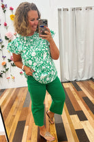 Slip into style and comfort with our Lisa High Rise Control Top Crop Jeans from Judy Blue. Featuring tummy control technology and 4-way stretch, these jeans provide a flattering fit. The wide leg crop and raw hem add trendy details, while the fun kelly green color will brighten up any outfit. Garment dyed for lasting color.