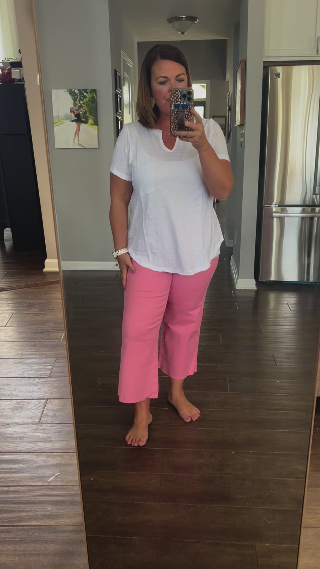 Lorraine High Rise Control Top Wide Leg Crop Jeans in Pink