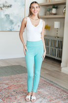 Achieve effortless style and comfort with our Magic Skinny Pants in Navy! These high rise pants feature a slim fit and ponte knit for a flattering silhouette. A pull-on design offers convenience while the tuxedo stripe and faux welt pockets add a touch of sophistication.