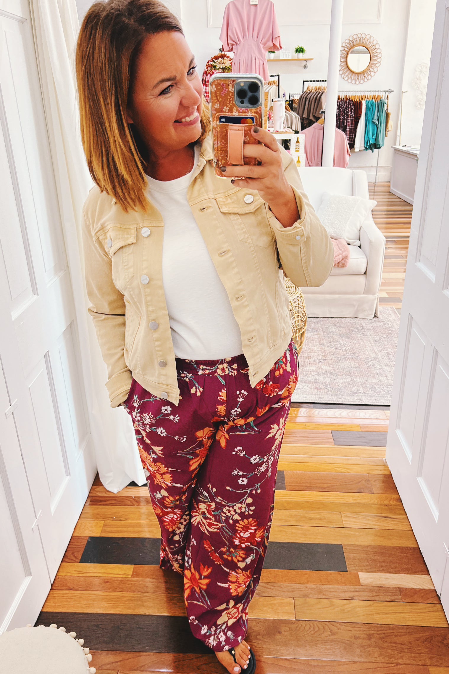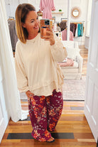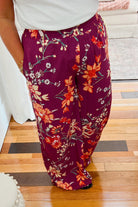 Say hello the most charming pants... with the Wanda Wide Leg Woven Pants. In a rich wine hue with abstract floral accents, these pants feature a comfy elastic waist and a loose fit that moves with you. Perfect for adding a pretty, feminine touch to your casual or dressy days, they blend comfort and style in one playful package.