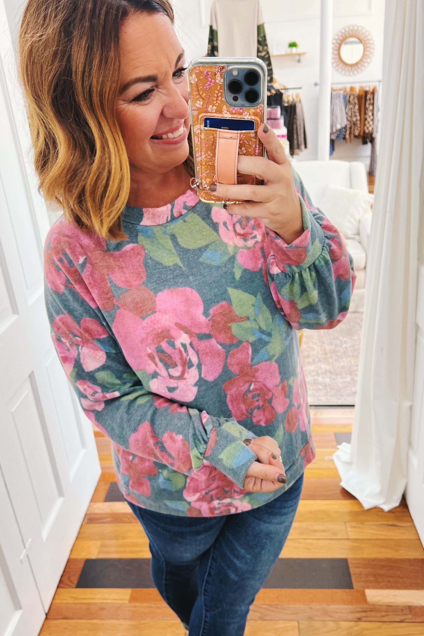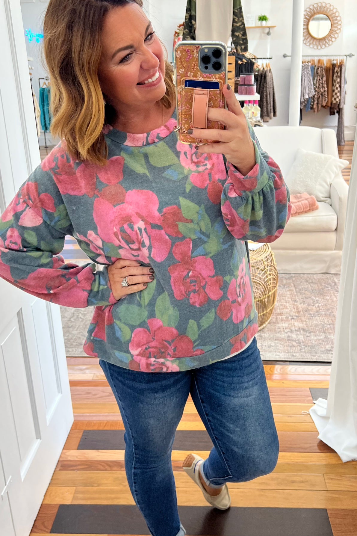 The Bernice Brushed Bubble Sleeve Floral Top combines feminine style with ultimate comfort. Crafted from soft, cozy brushed fabric in a charcoal and berry floral print, it offers a relaxed fit and super stretchy feel. Perfect for dressing up or down, this top delivers girly comfort with a fun bubble sleeve twist that keeps your look fresh and lively.