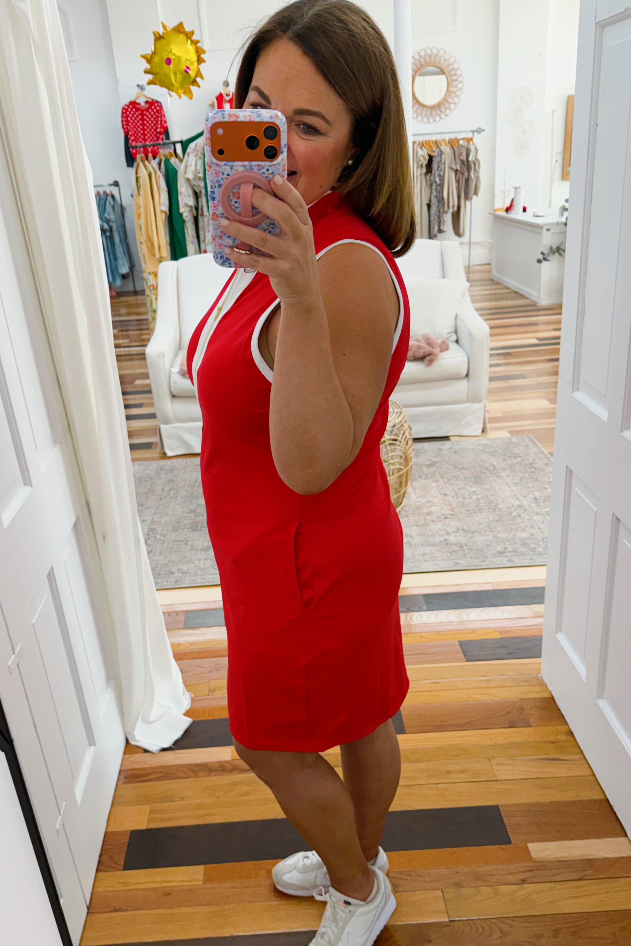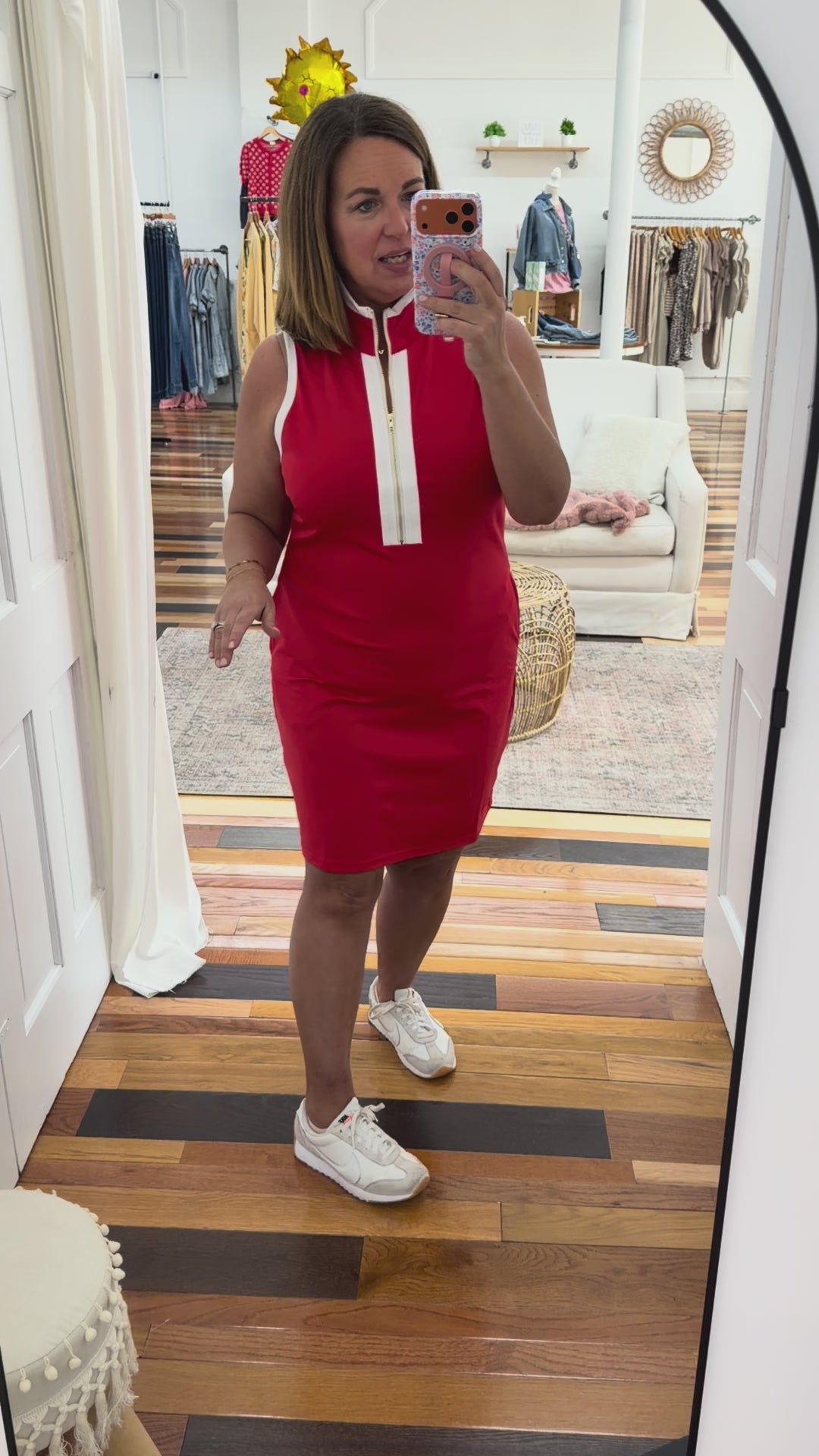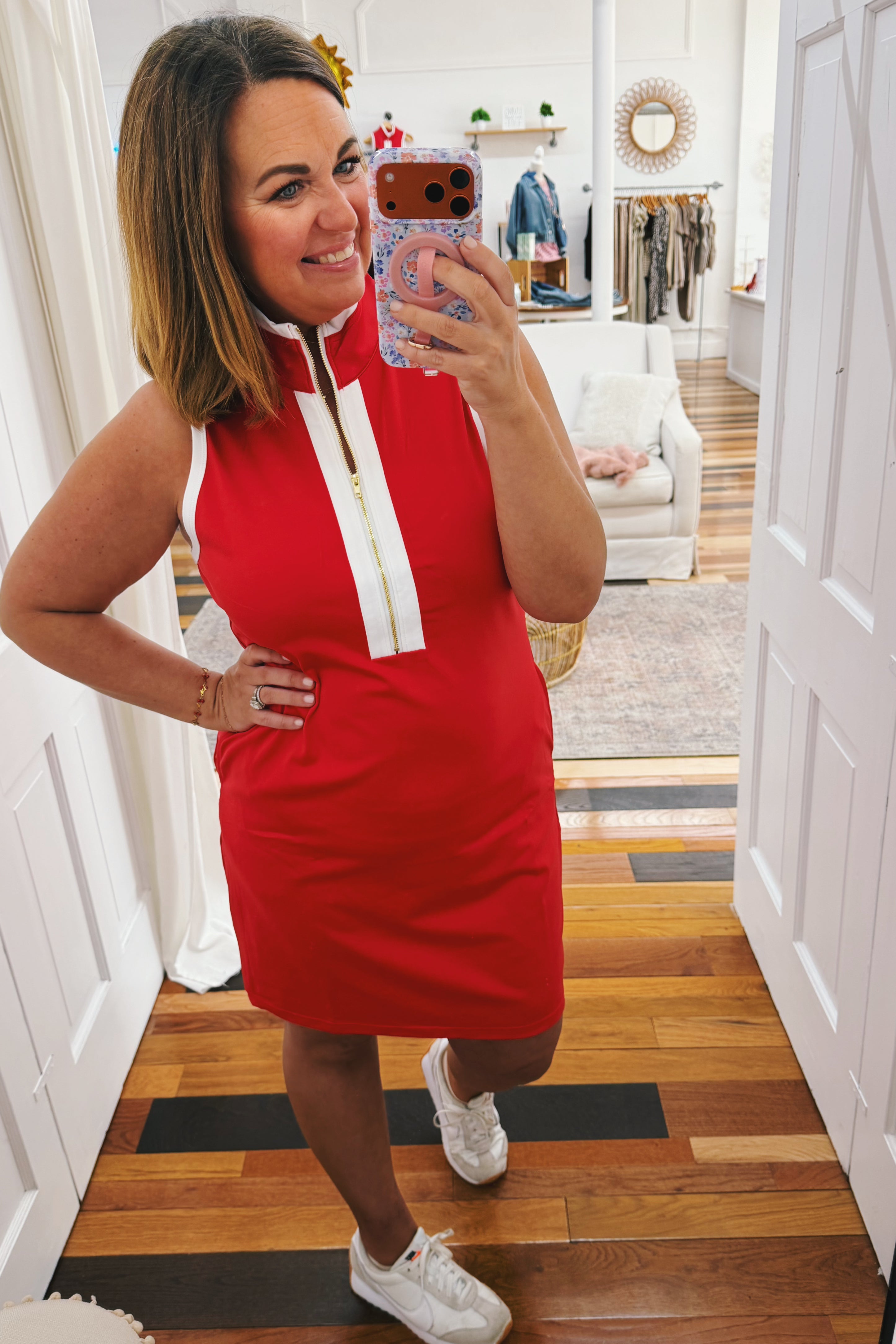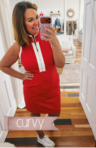 • red half zip dress