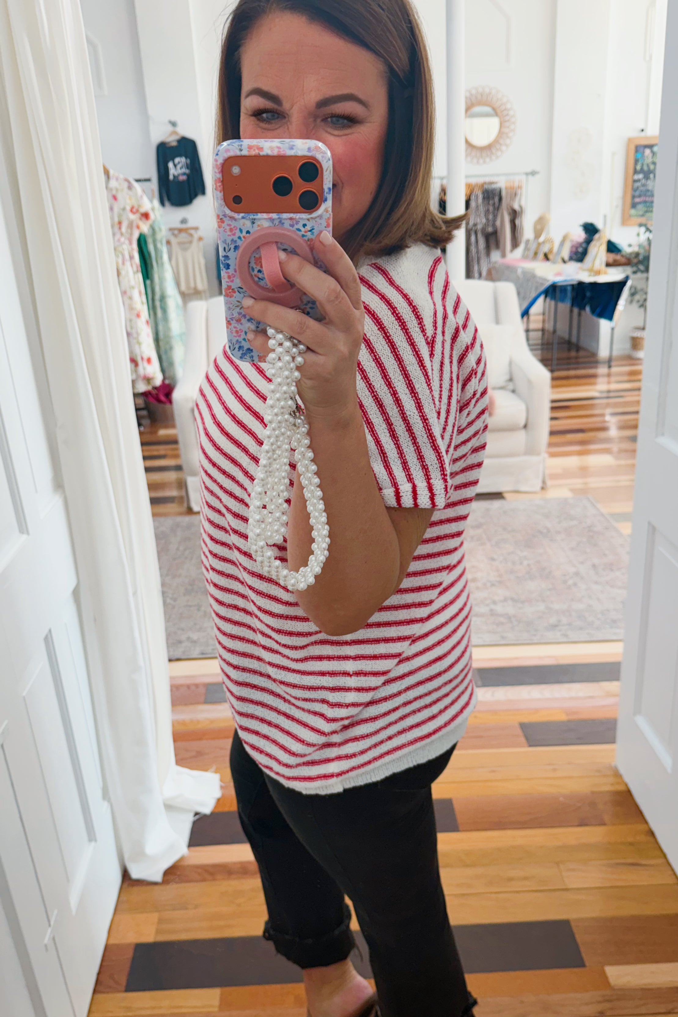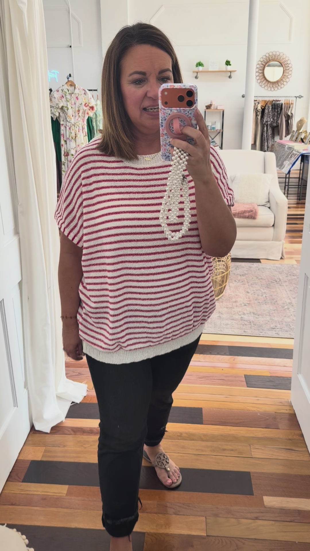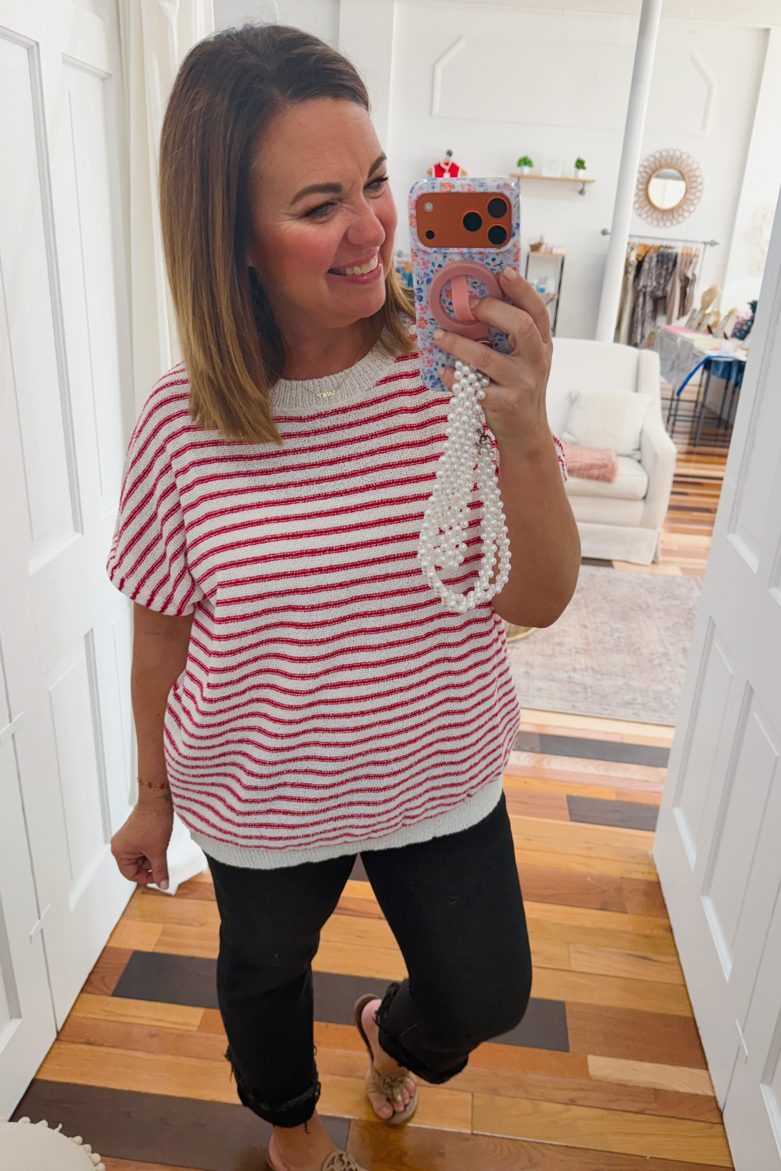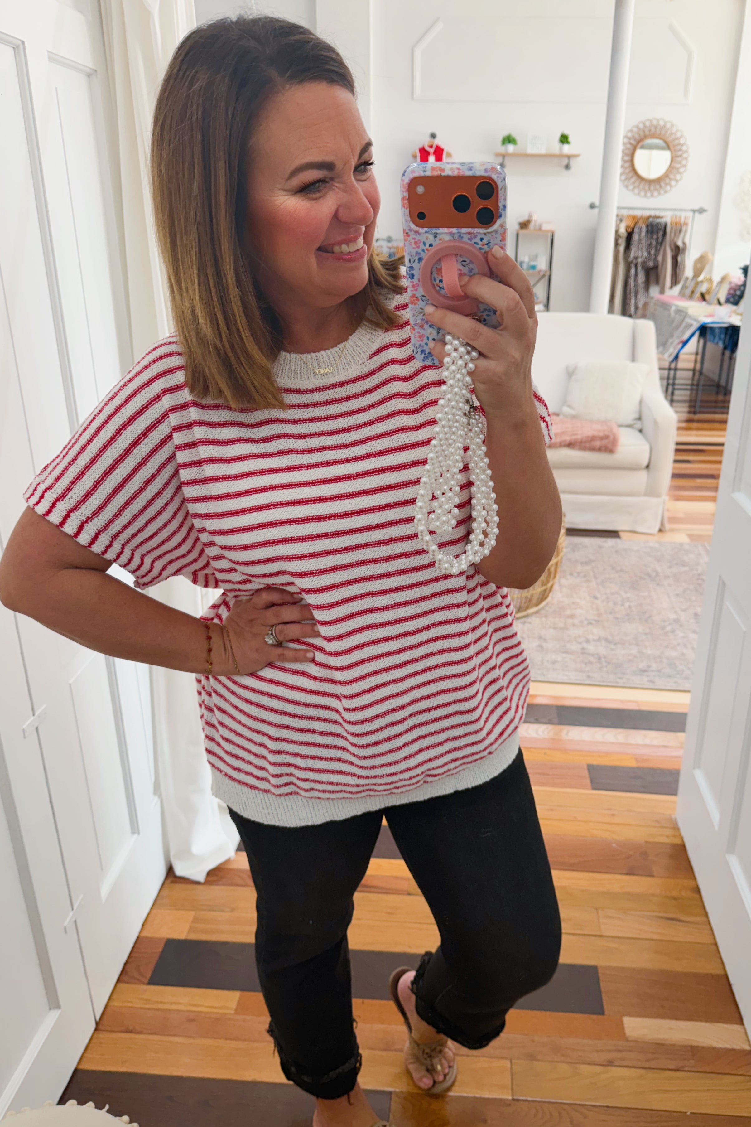 • red and white striped light knit sweater