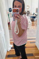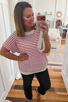 Effortless summer style meets timeless appeal with this loose-fit lightweight sweater. The classic red and white striped pattern channels nautical charm and patriotic flair, making it perfect for casual days or dressed-up occasions. Crafted from breathable knit fabric, it layers beautifully or stands alone as a versatile wardrobe essential. Transition seamlessly from weekend brunch to evening gatherings with this relaxed, flattering silhouette.
