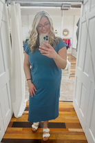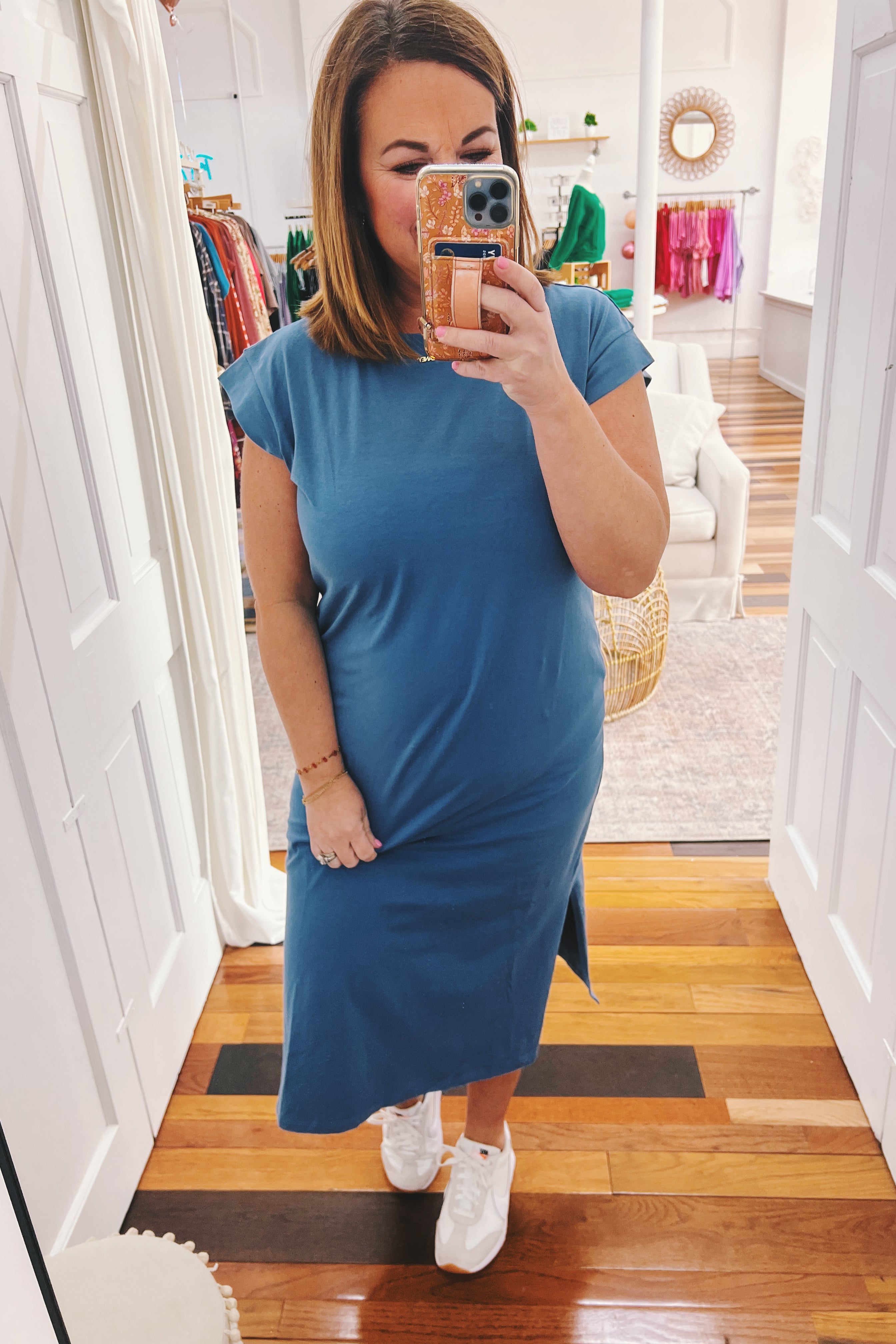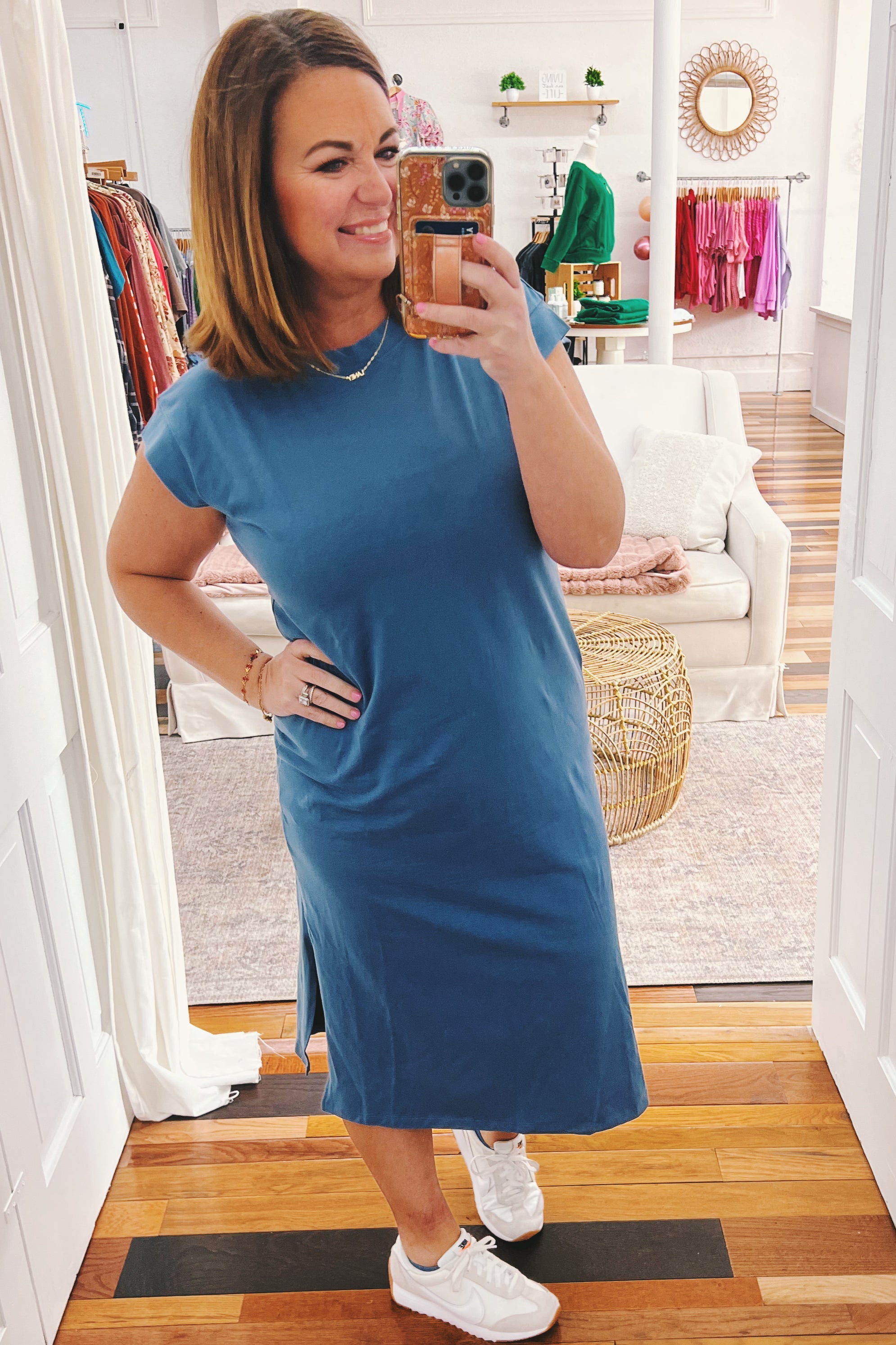 Jocelyn Tshirt Cap Sleeve Midi Dress Dusty Blue