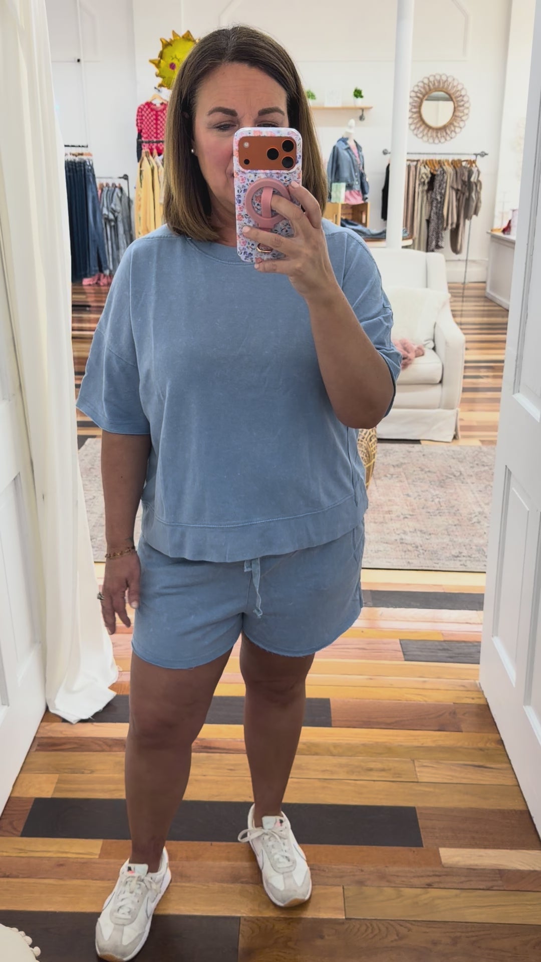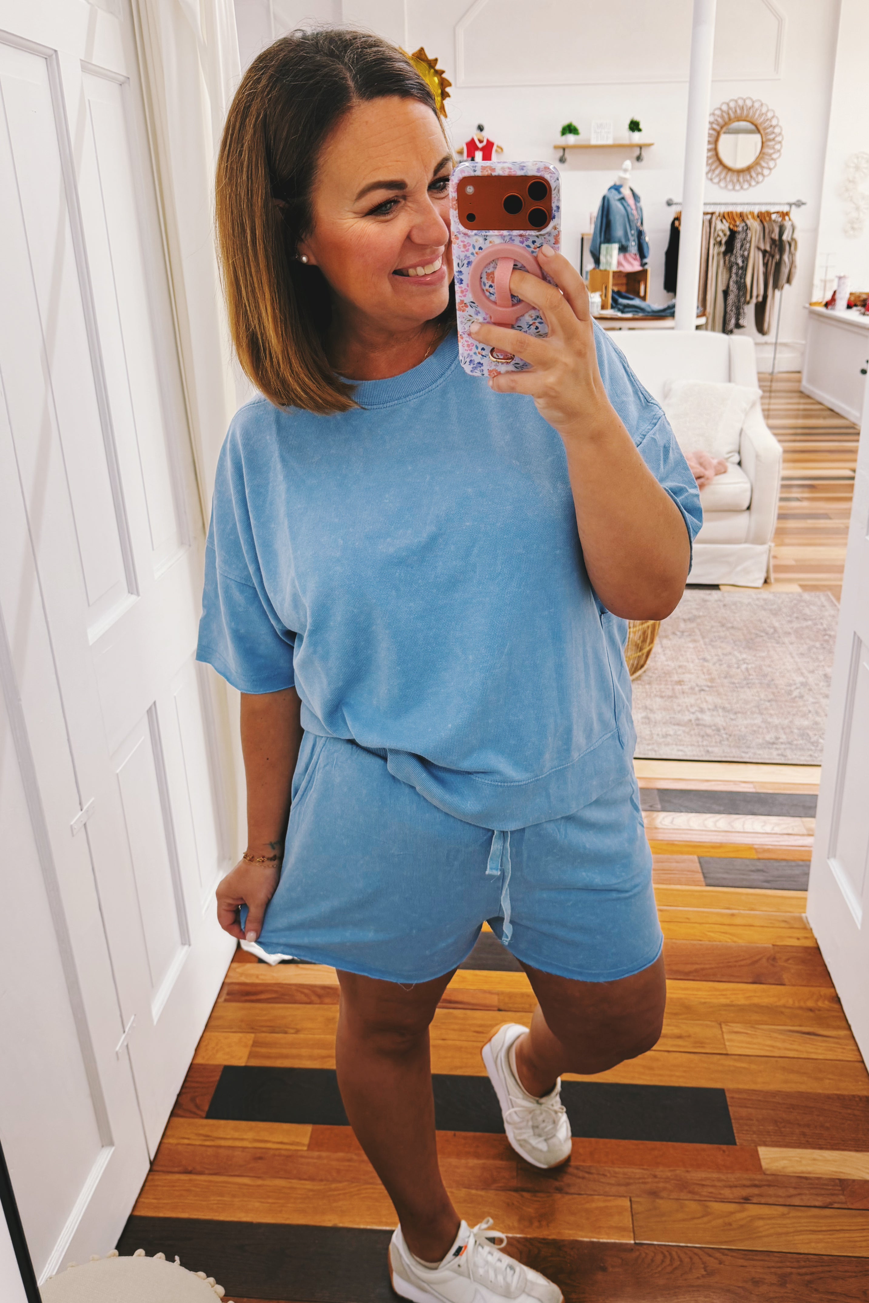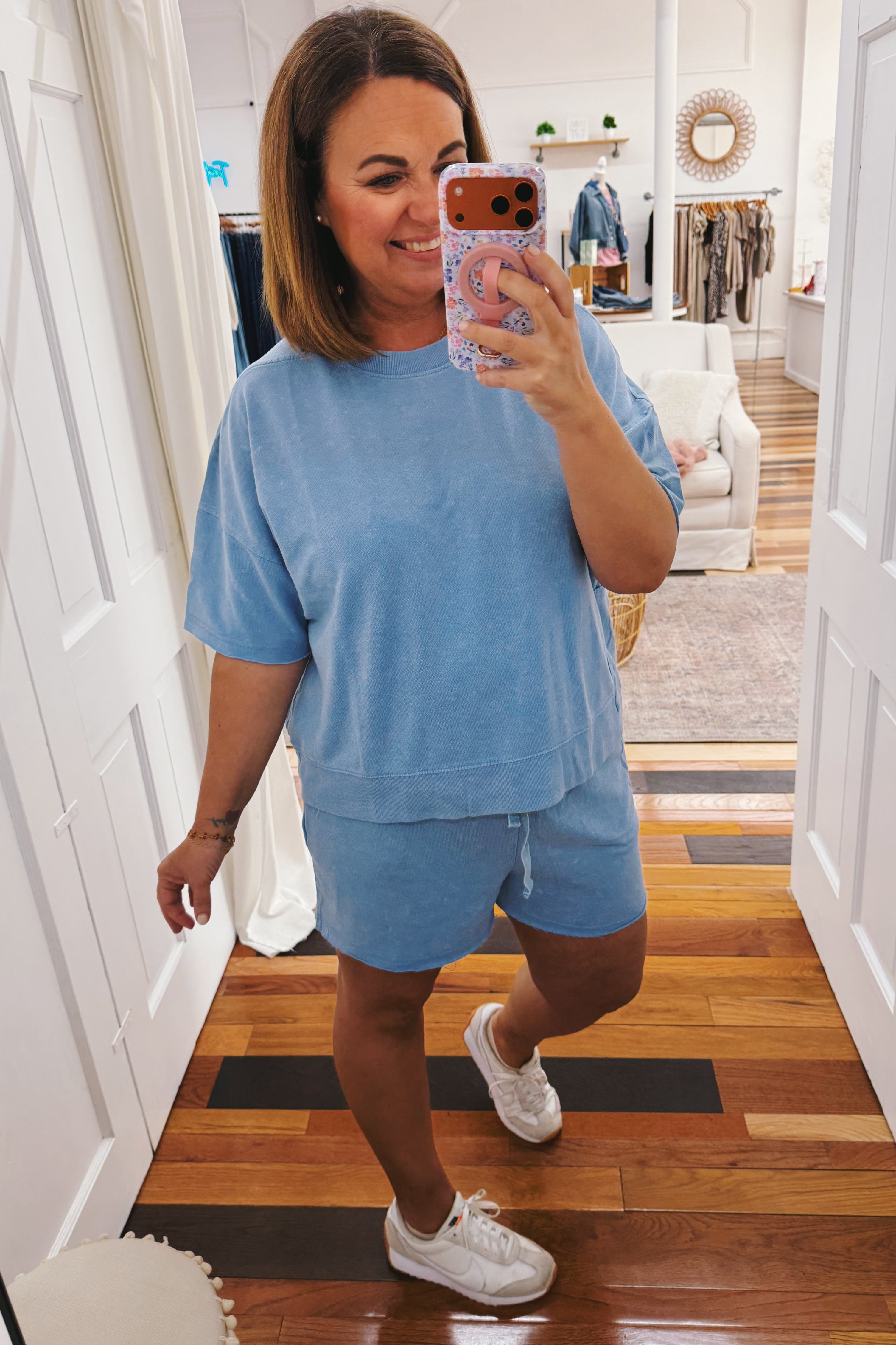 Effortlessly comfortable in soft blue french terry, this mineral-washed knit set features a broken-in, lived-in softness that feels like your favorite piece. The slouchy fit moves with you—perfect for lounging at home or running errands around town. Pre-washed for that coveted worn-in feel, it's ready to become your go-to everyday essential.