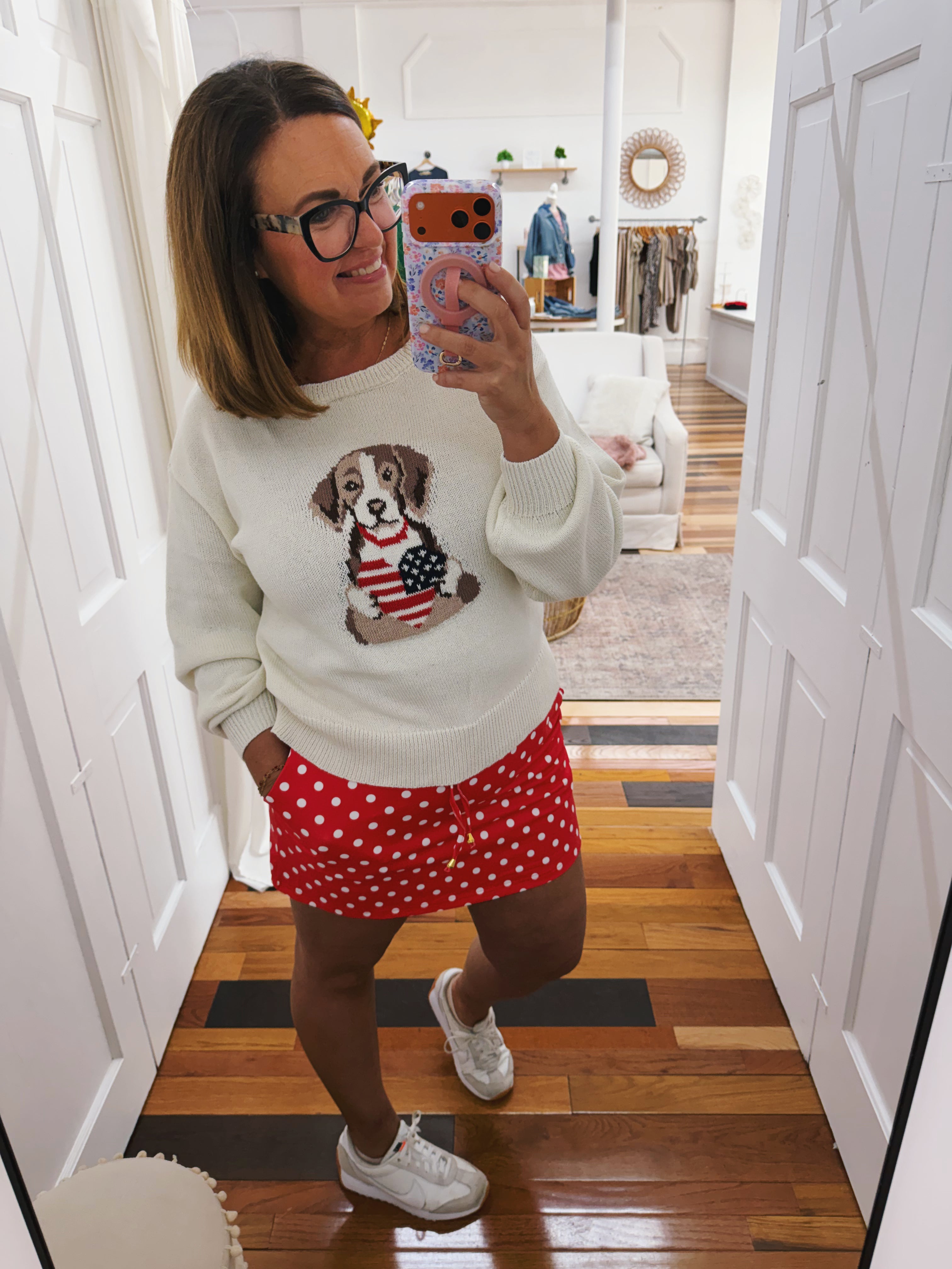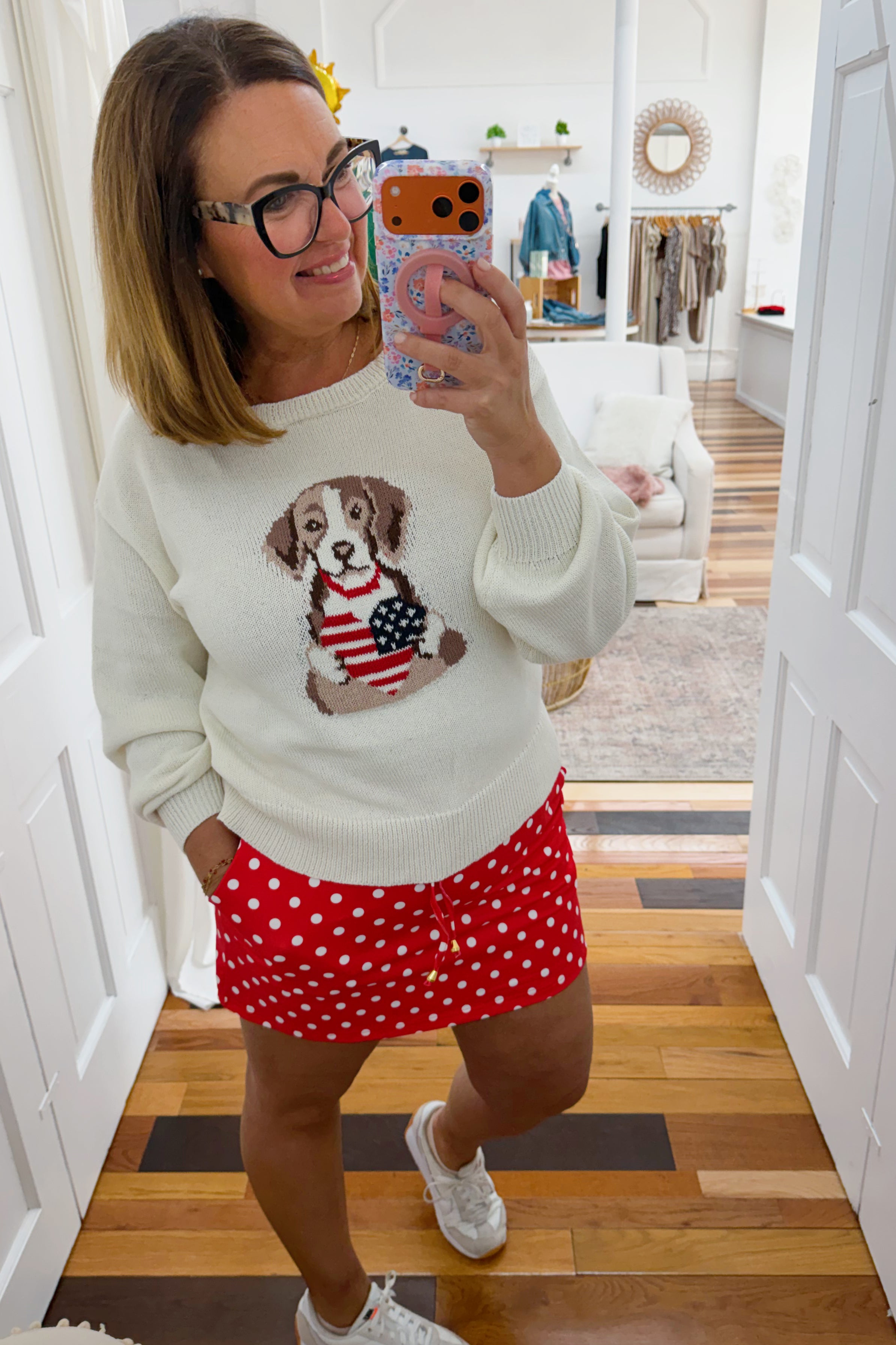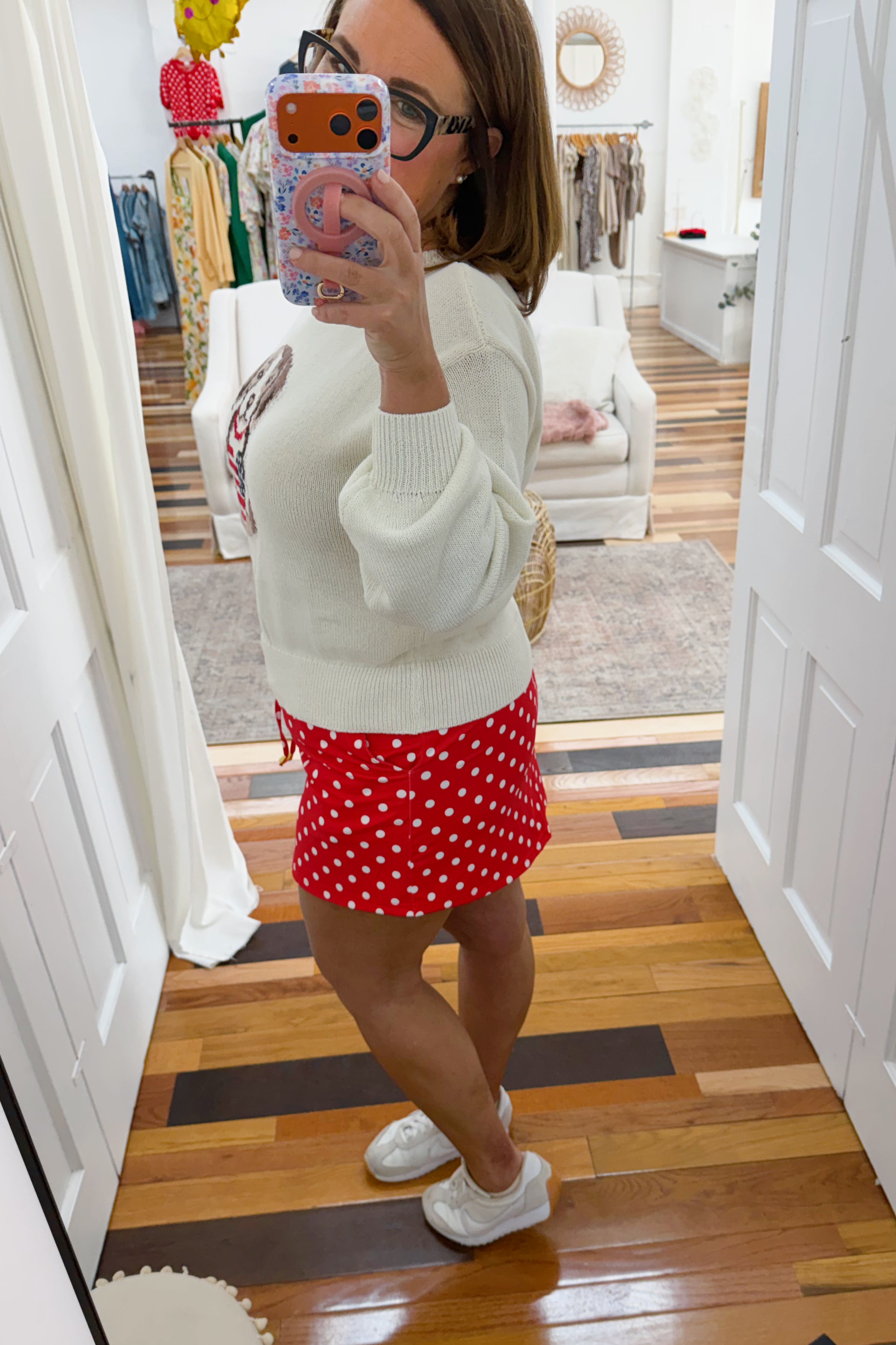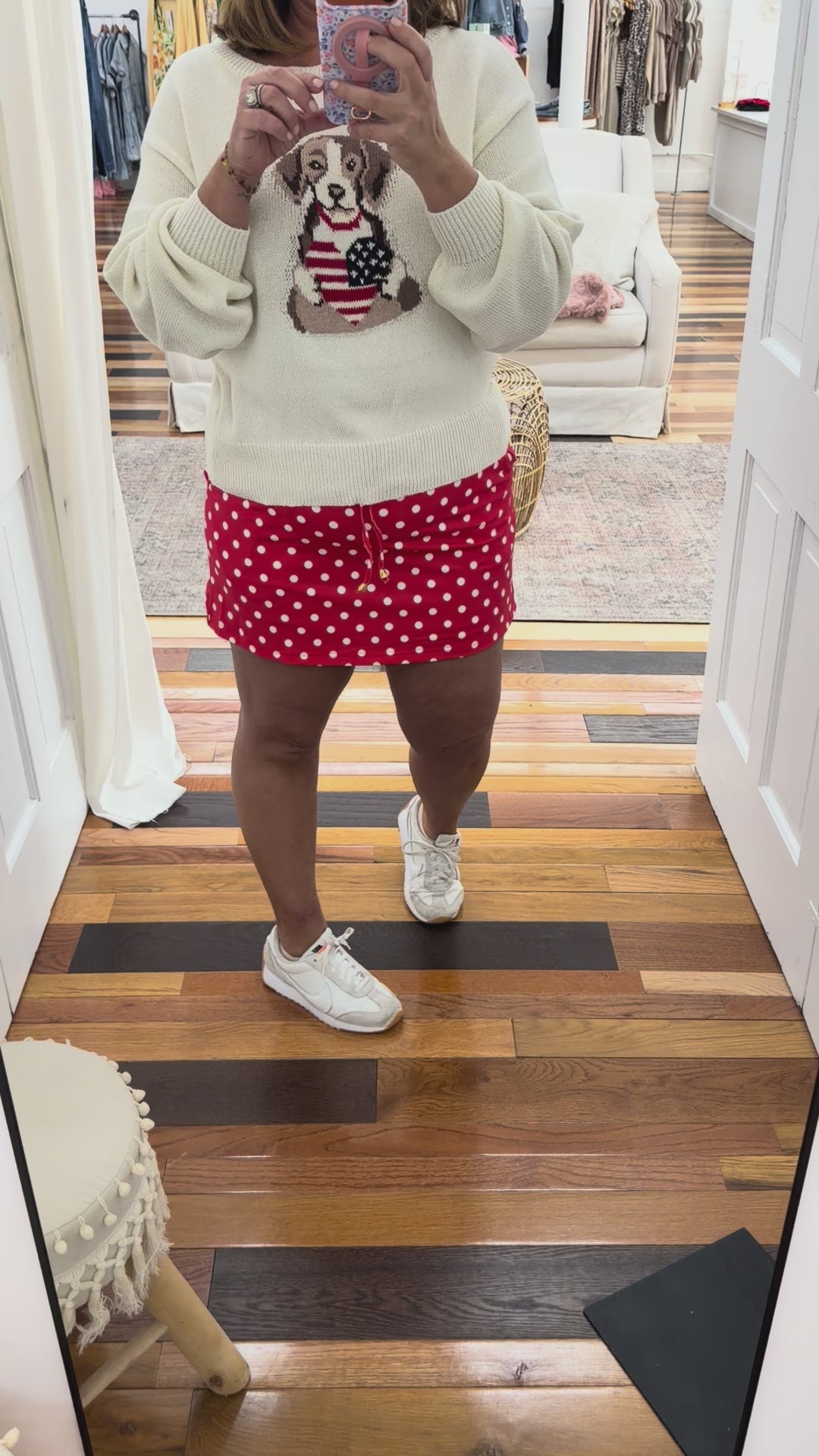 - red and white polka dot skort