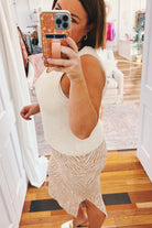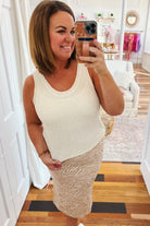 The Stella Knit Tank is the layering essential you didn't know you needed. Made from textured cream knit with a structured, non-stretch fabric that holds its shape beautifully, this piece features a subtle crop and slim silhouette that works solo or paired with everything in your closet. Whether you're styling it under an oversized button-up or peeking out from beneath a sweater, the Stella adds dimension and interest to any outfit with effortless sophistication.