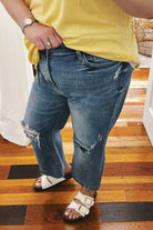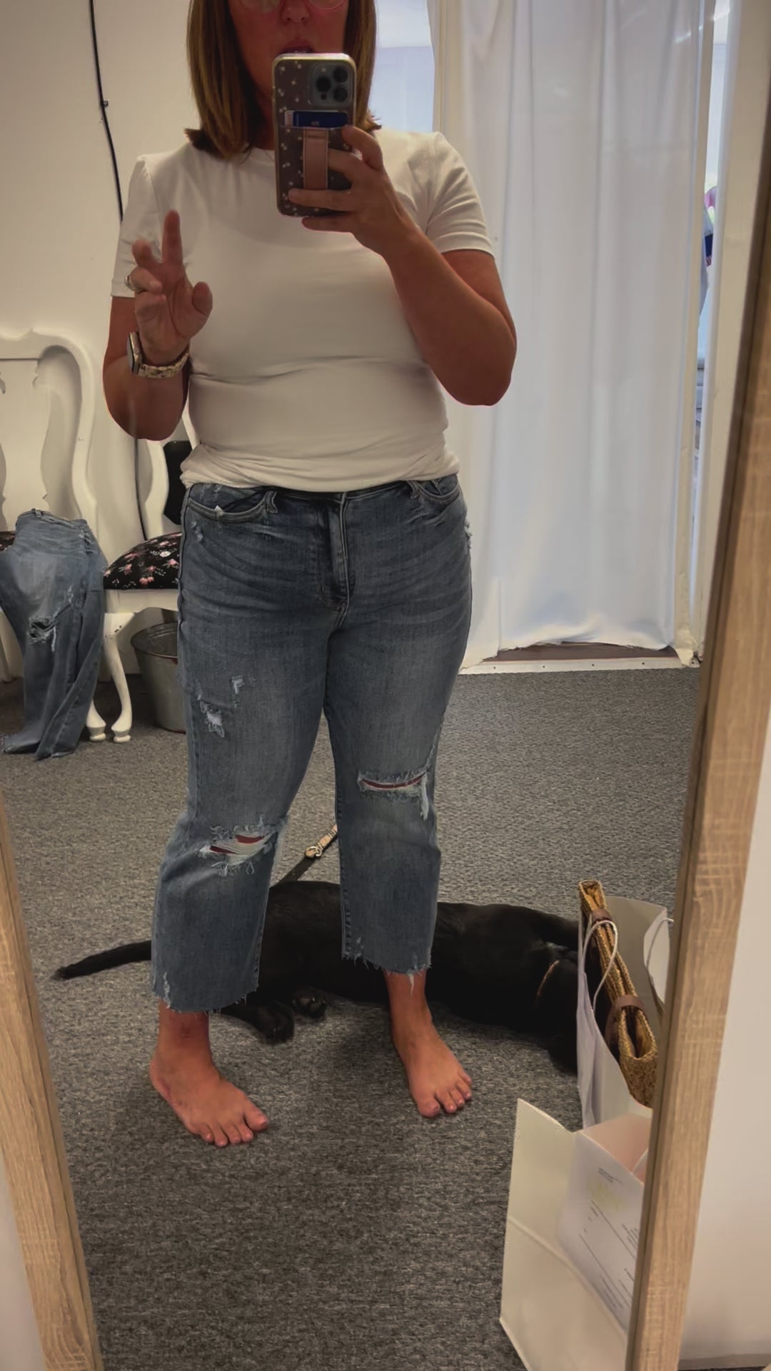 Say goodbye to boring, uncomfortable jeans and hello to Bailey High Rise Distressed Cropped Jeans! These medium wash jeans feature a straight leg crop, distressed details, and a high rise for a flattering fit. Plus, the great stretch will keep you feeling cute and comfy all day long. These will be your new go-to!!