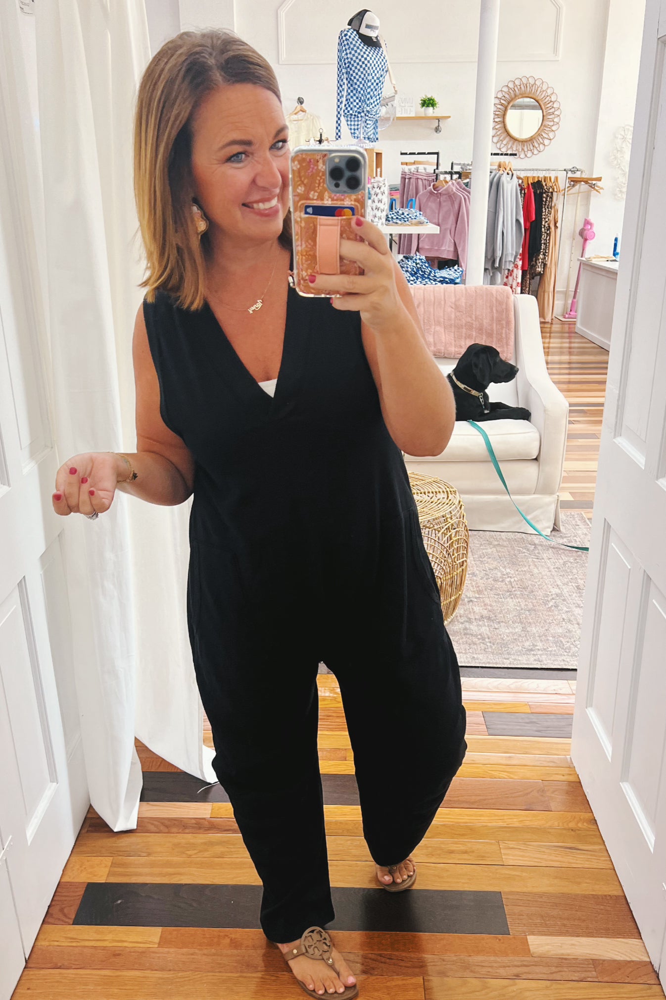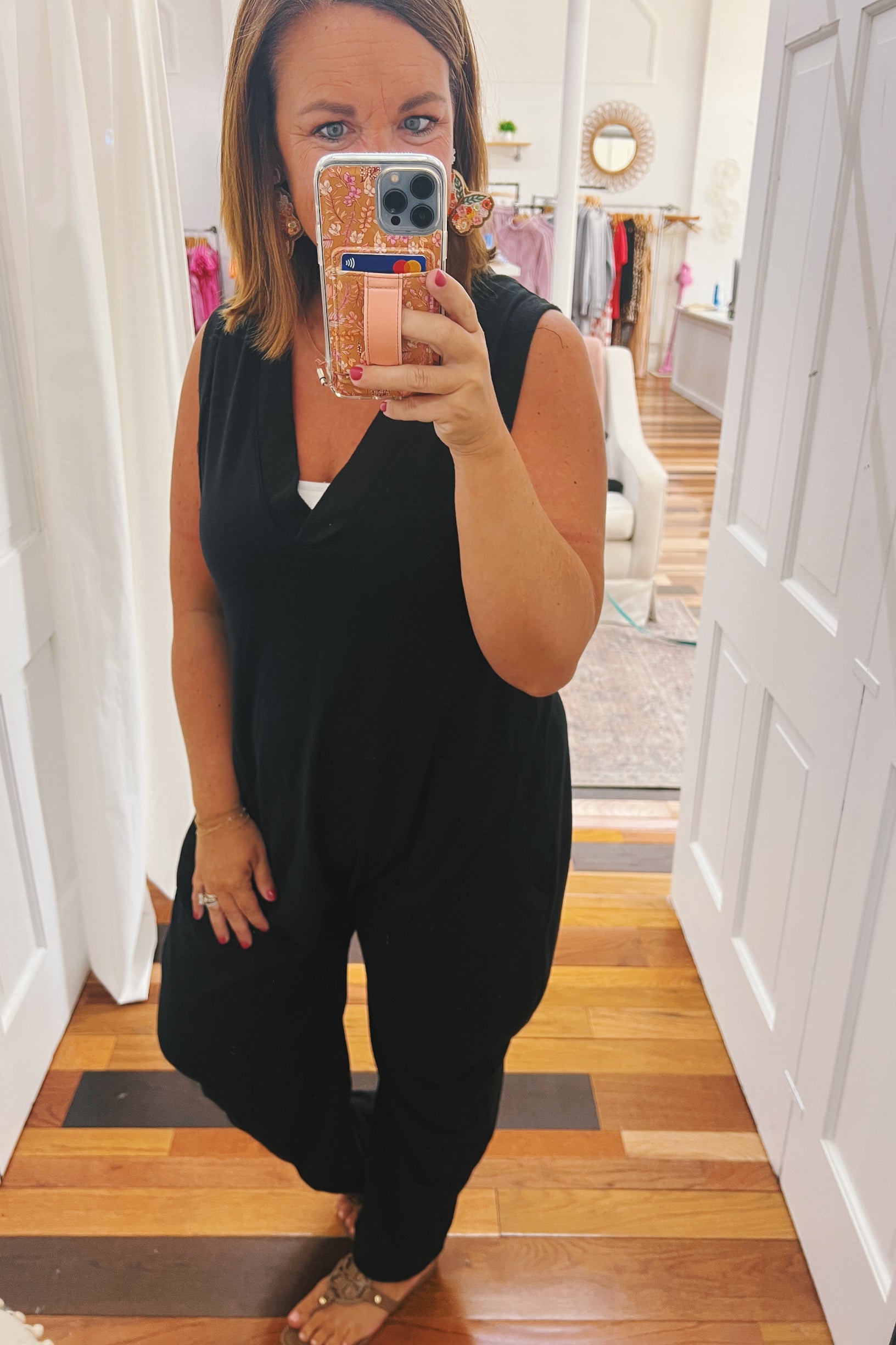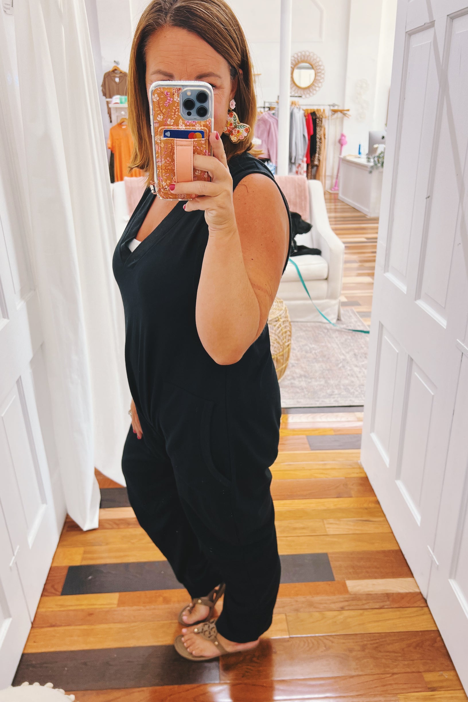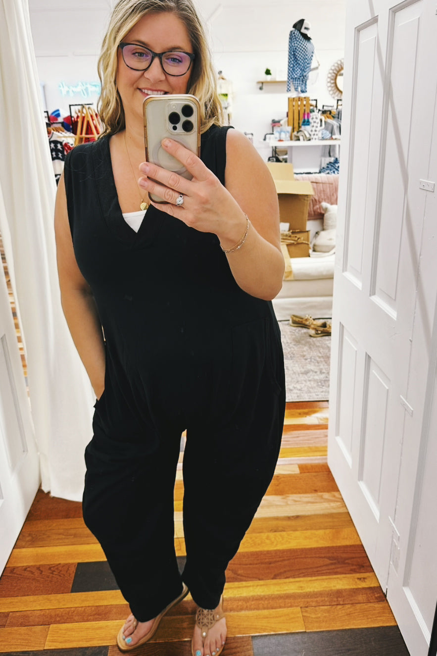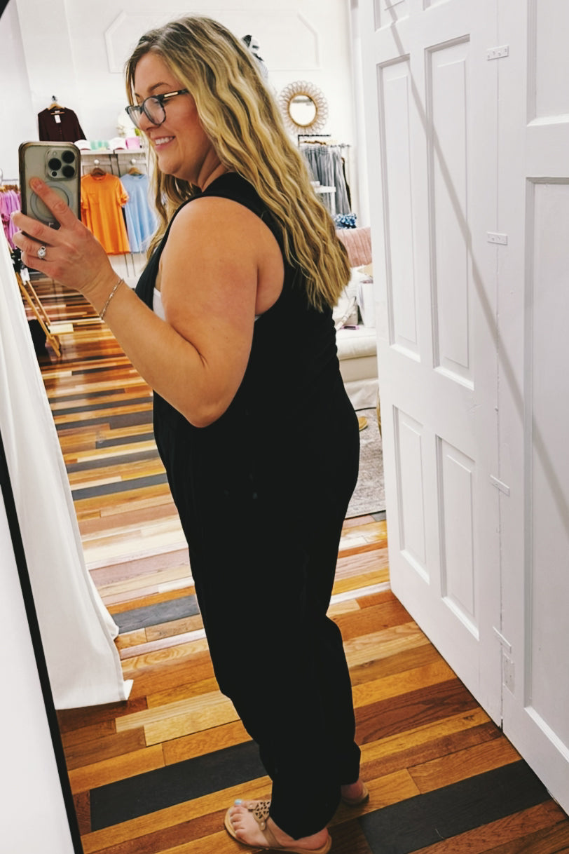 Relax in style with the Brianna French Terry Slouchy Jumpsuit. Made from soft French terry fabric, it features a trendy slouchy fit and handy side pockets. Perfect for sidelines, travel, or concerts, this cute jumpsuit keeps you comfortable and effortlessly chic wherever you go.