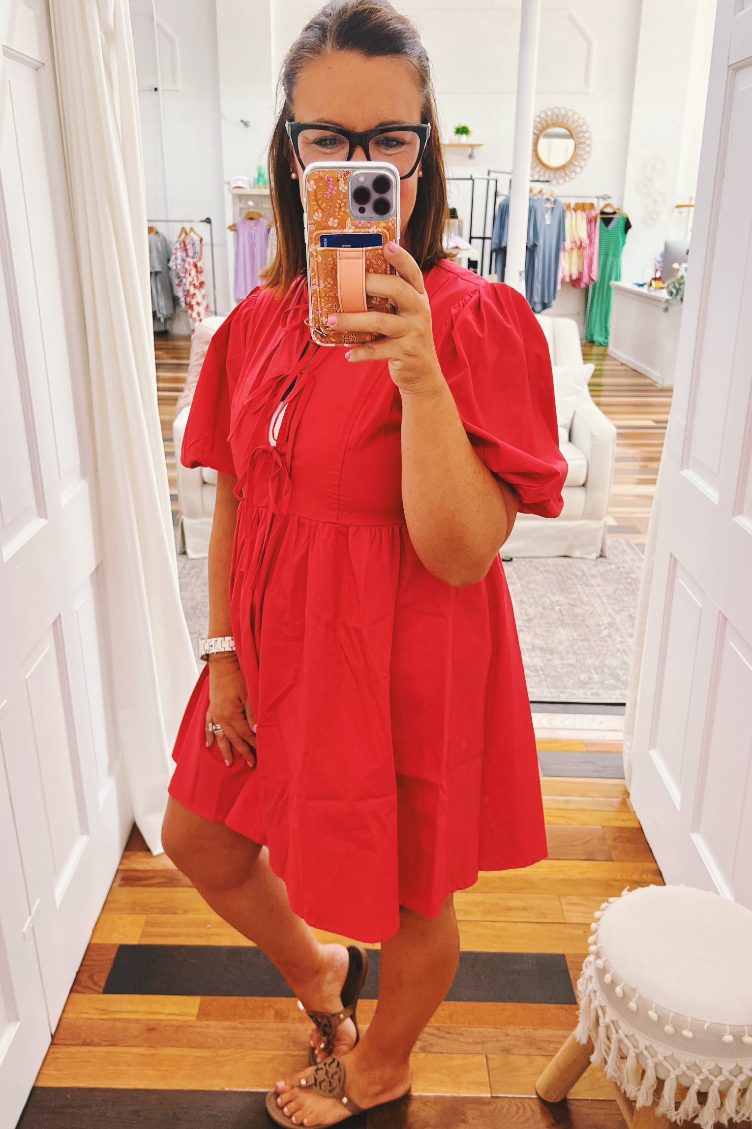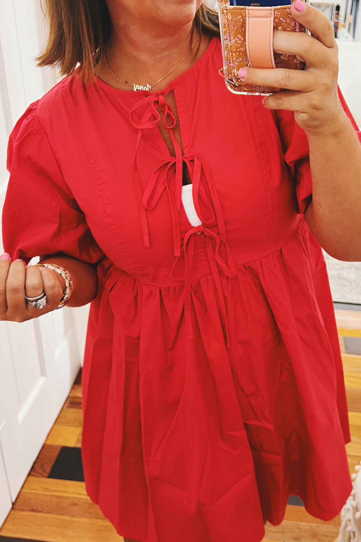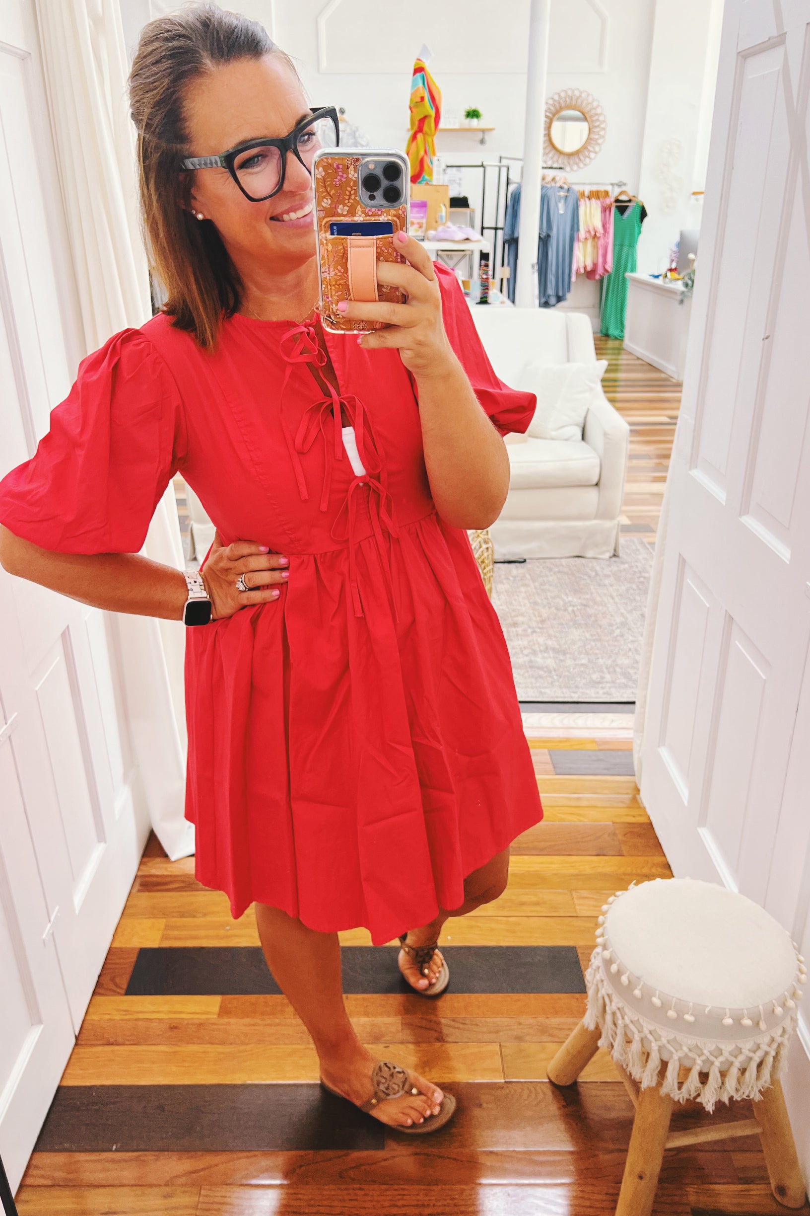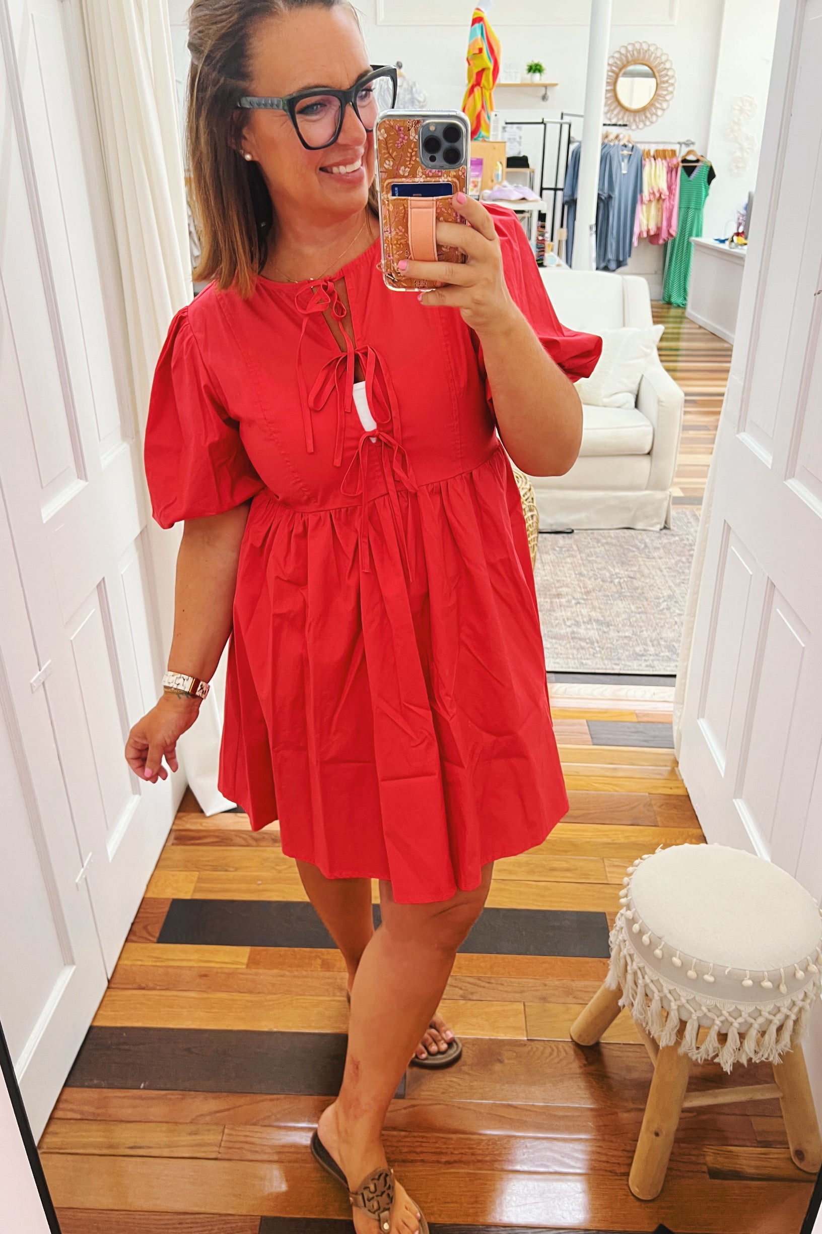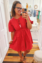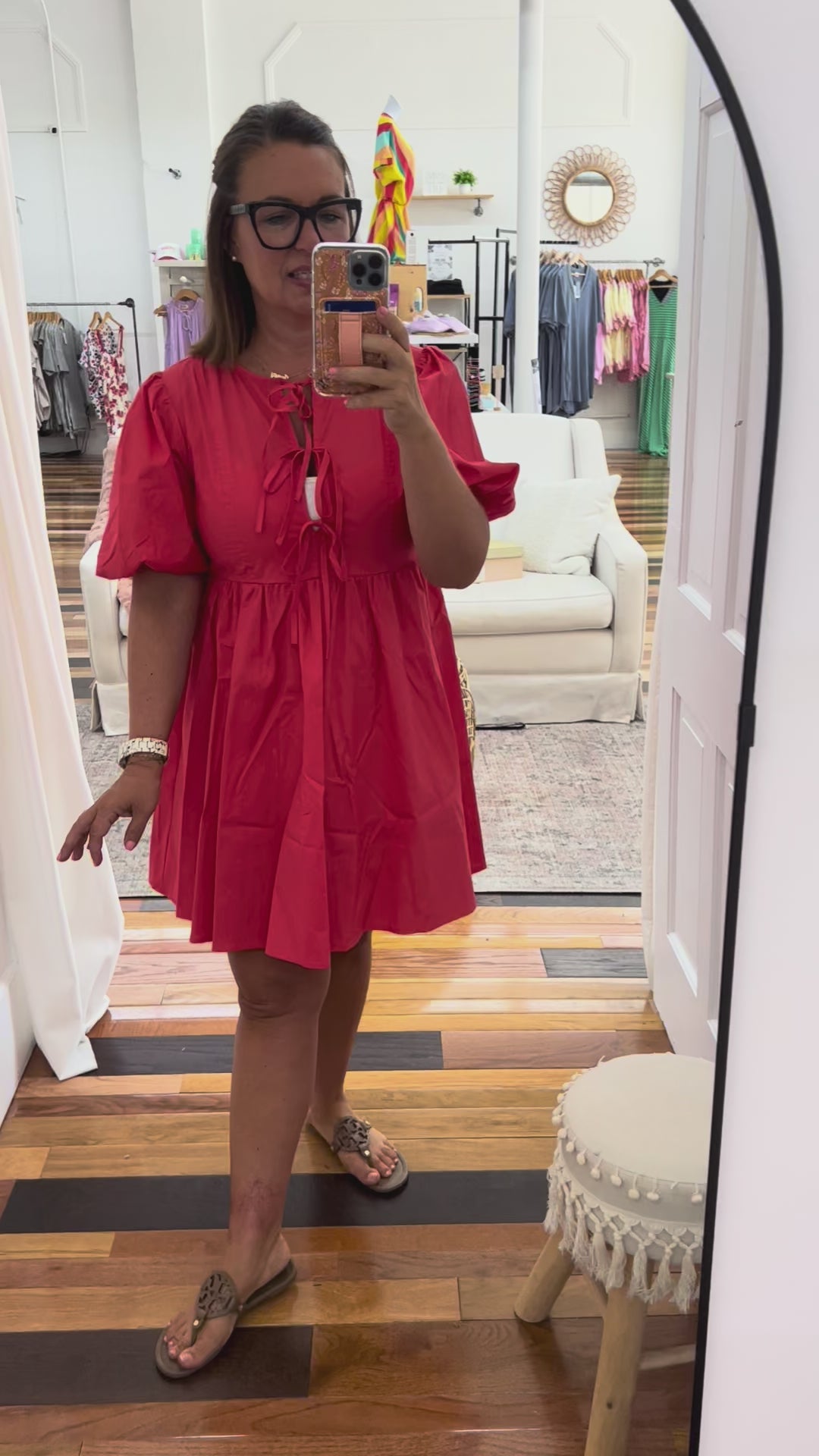 The Penelope Woven Bow Dress in classic subtle red offers a soft, breathable fabric perfect for all-day comfort. Its woven texture and delicate bow detail add a girly, playful touch while keeping the look timeless and elegant. Ideal for those who love a gentle pop of color with a classic twist.