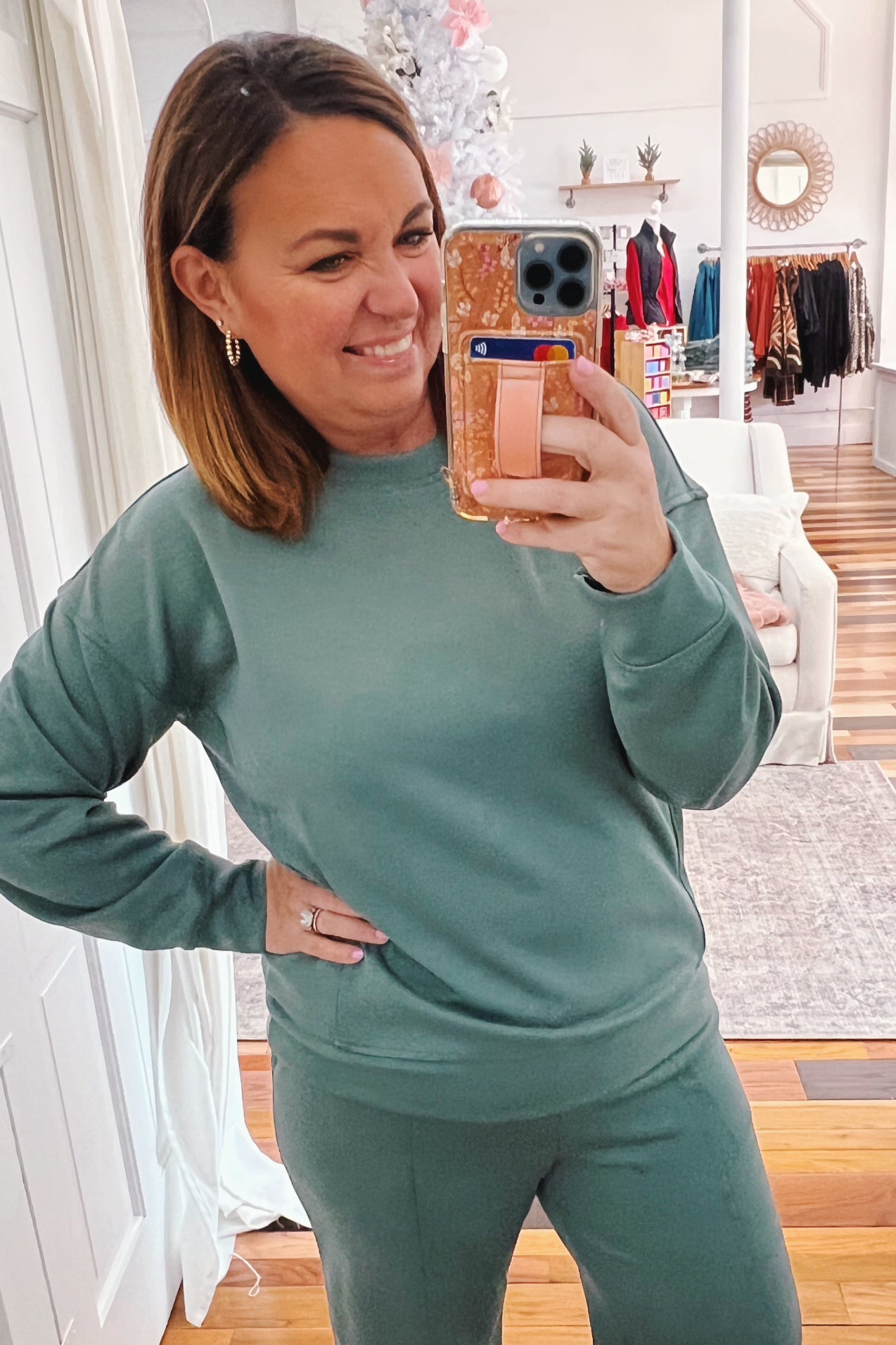 Joyce Scuba Side Slit Sweatshirt Dark Forest