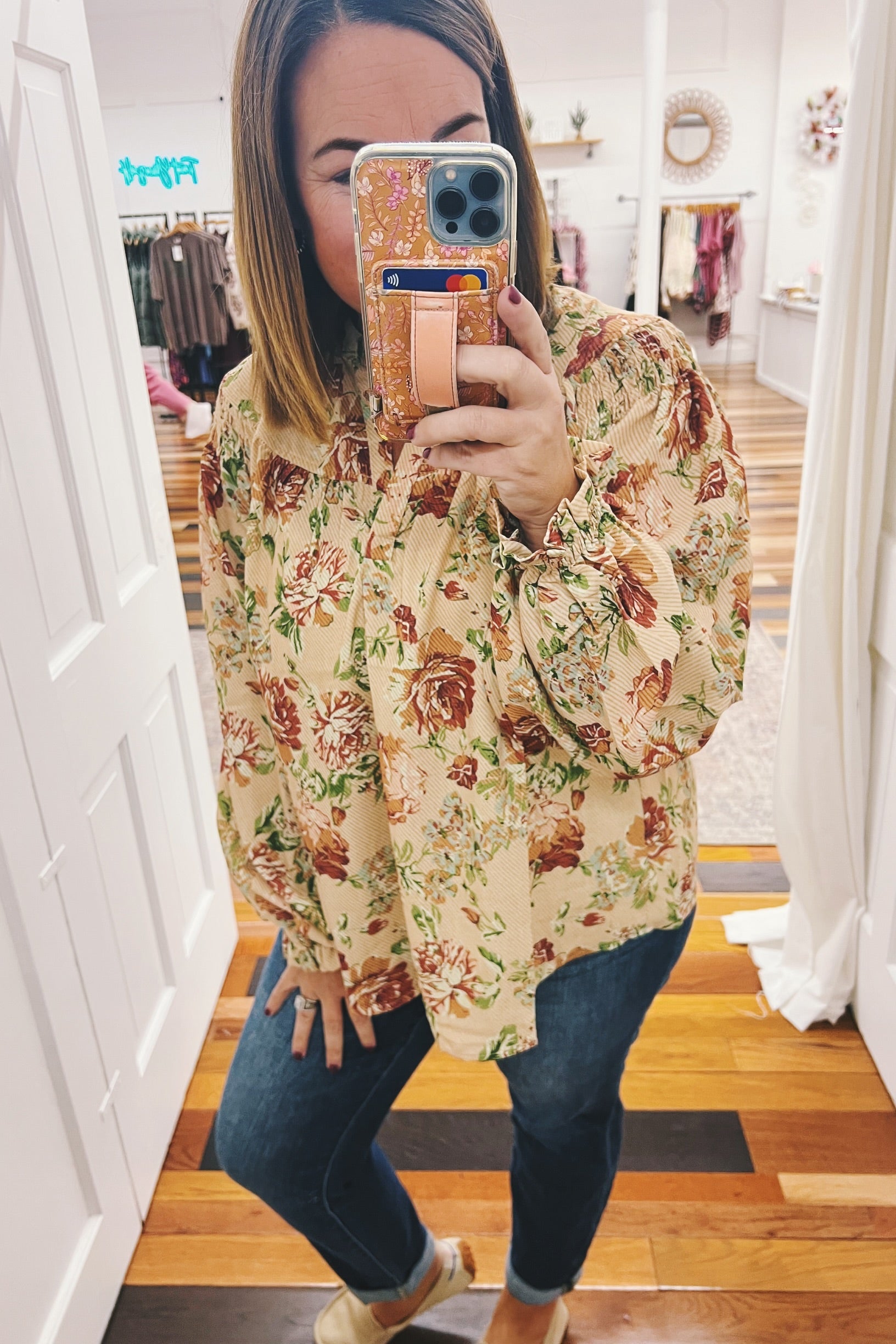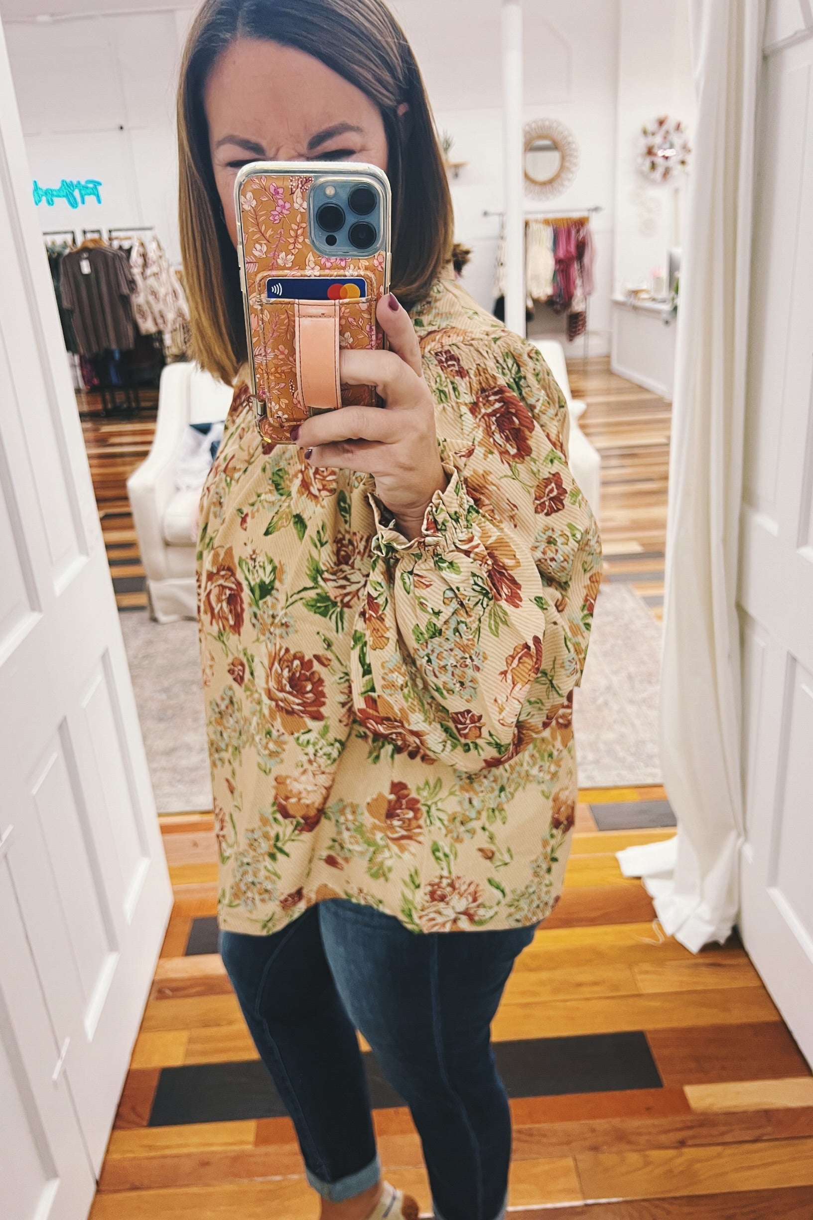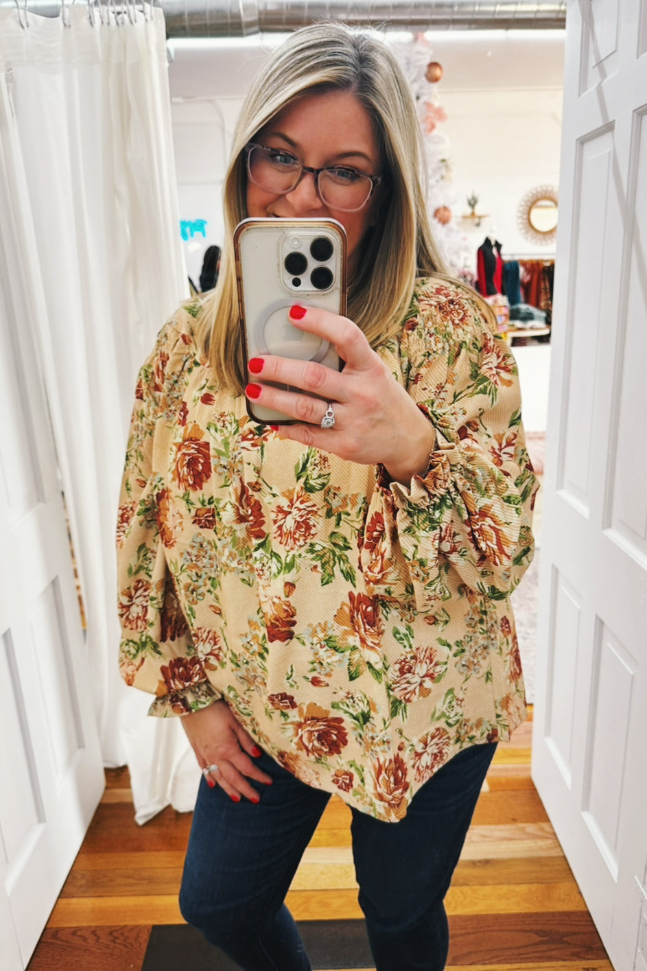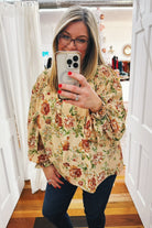 Introducing the Jocelyn Smocked Shoulder Floral Top—your new go-to for effortless elegance. This gorgeous piece features a timeless vintage floral print in soft, muted tones that pairs beautifully with everything in your closet. The smocked shoulders and elastic cuffs create a flattering, flowy silhouette that leaves you feeling so pretty. Whether you're gathering around the table this Thanksgiving or heading out for a casual weekend adventure, this top delivers comfort without compromising on style. It's the kind of piece that makes you feel put-together without even trying.