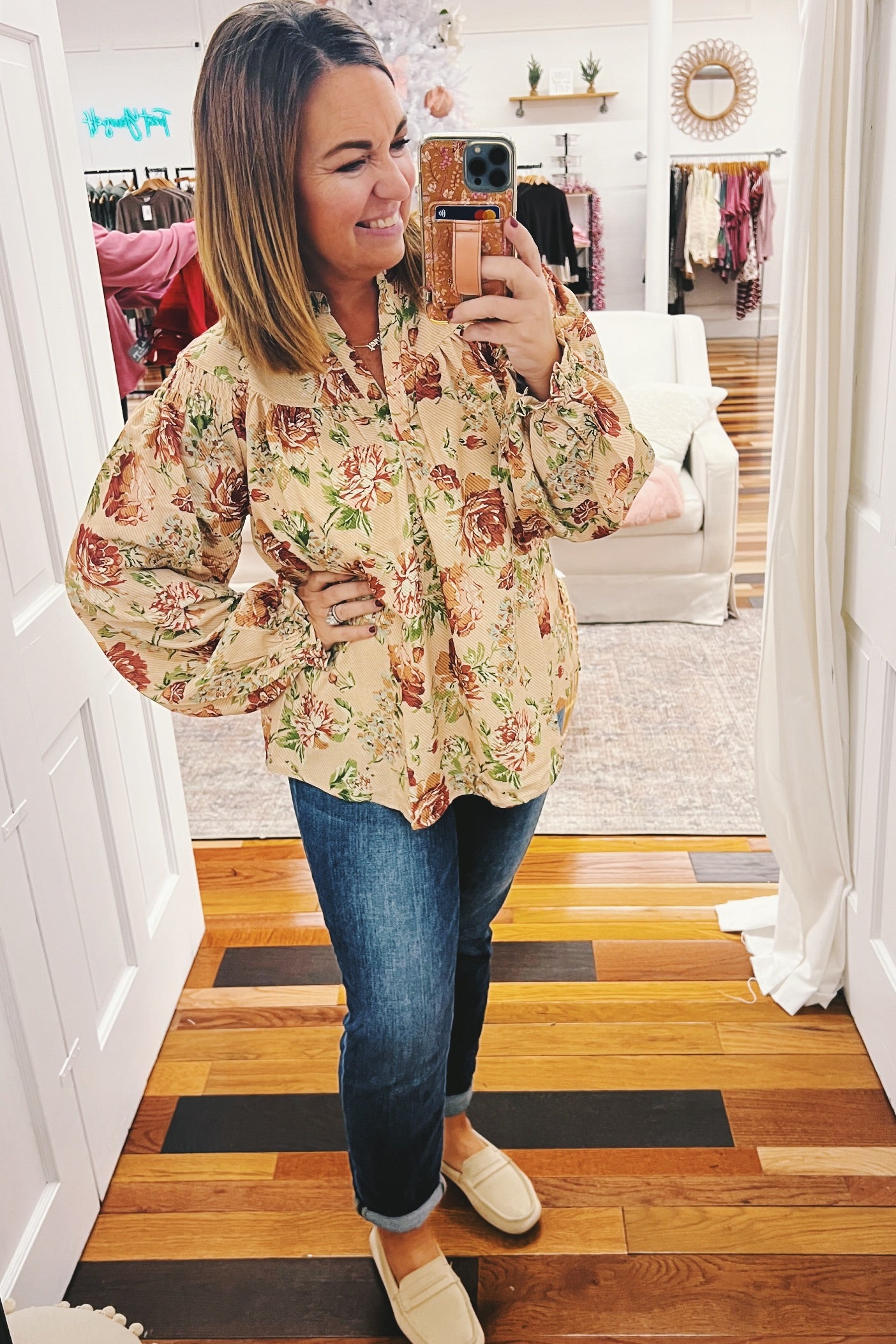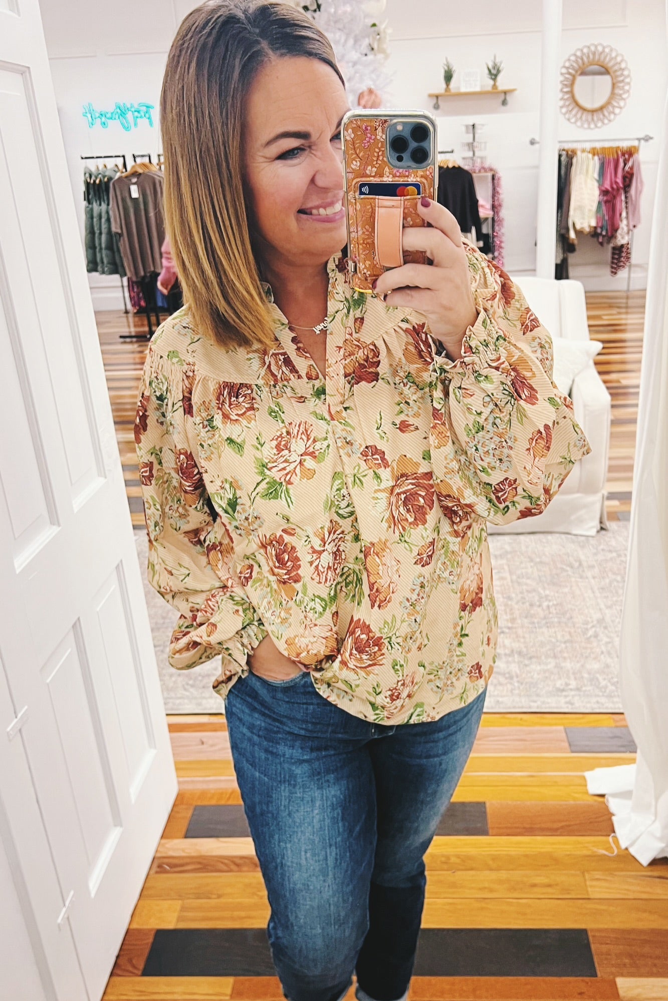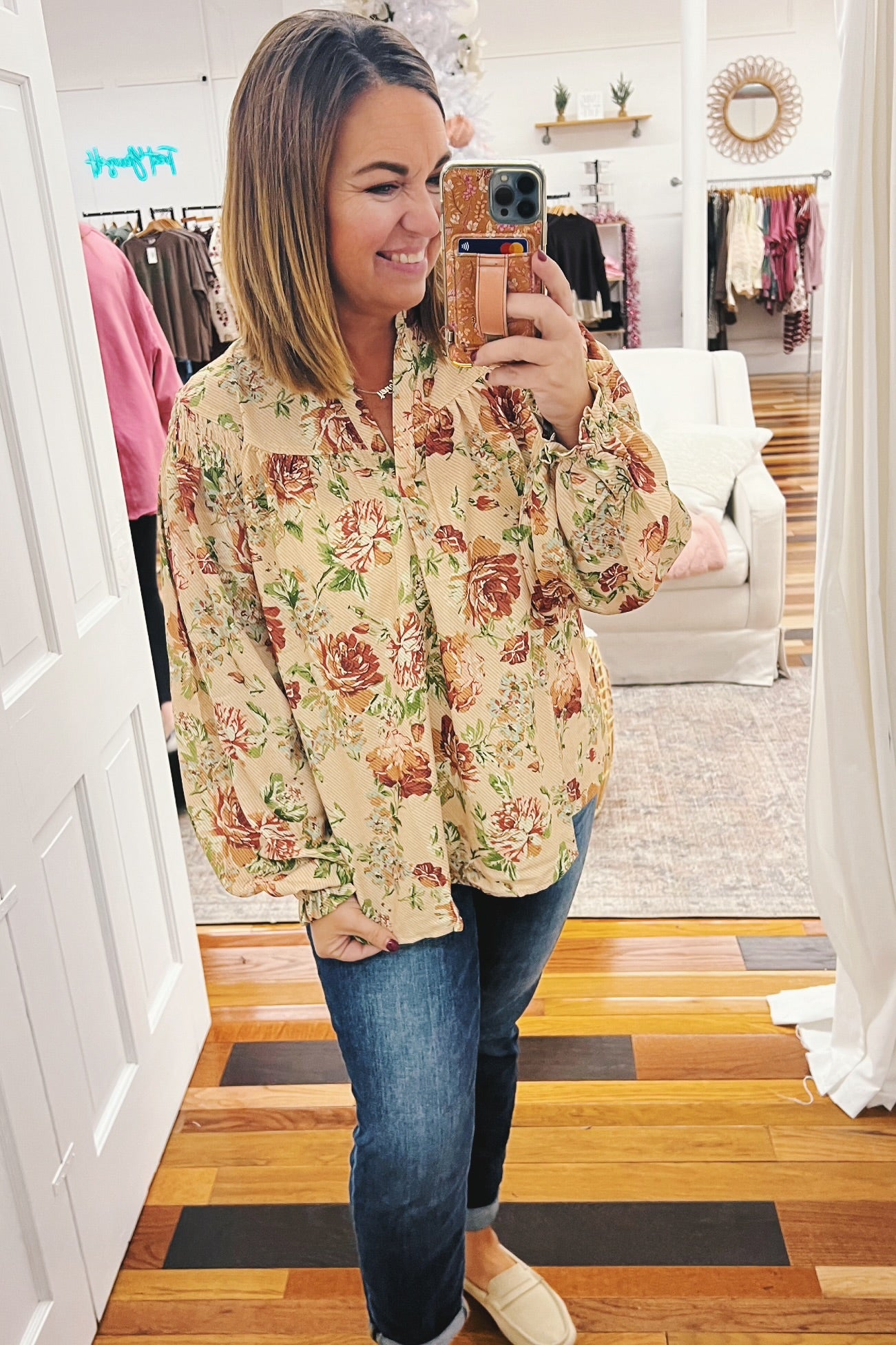 Introducing the Jocelyn Smocked Shoulder Floral Top—your new go-to for effortless elegance. This gorgeous piece features a timeless vintage floral print in soft, muted tones that pairs beautifully with everything in your closet. The smocked shoulders and elastic cuffs create a flattering, flowy silhouette that leaves you feeling so pretty. Whether you're gathering around the table this Thanksgiving or heading out for a casual weekend adventure, this top delivers comfort without compromising on style. It's the kind of piece that makes you feel put-together without even trying.