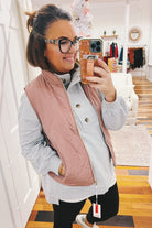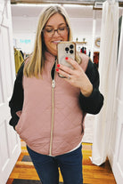 Wrap yourself in cozy charm with the Penelope Fur Lined Vest! This adorable quilted layer features a soft mauve hue that's equal parts sweet and sophisticated. The stretchy side panels ensure a comfy, flattering fit, while the convenient zip front makes layering effortless. Lined with plush fur for extra warmth and snuggle-worthy softness, it's the perfect piece to add a touch of playful elegance to any outfit. Your new favorite go-to vest awaits!