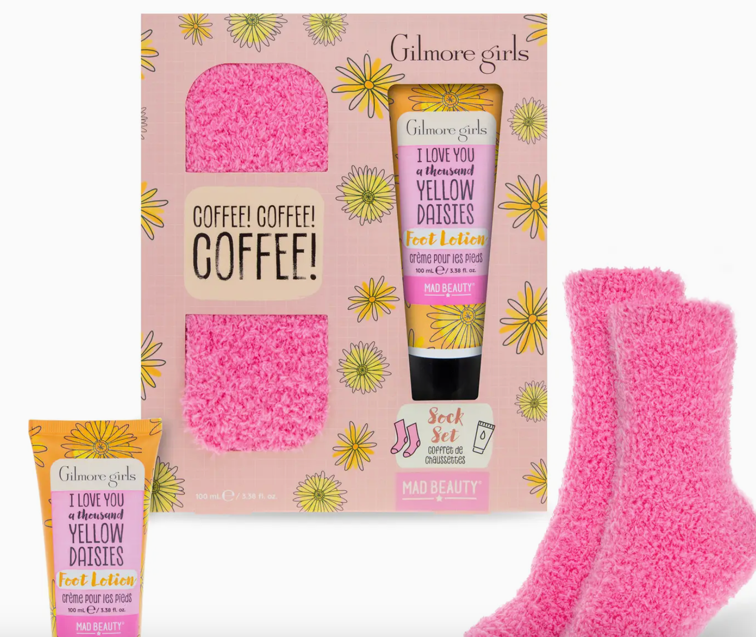Relax like you're in Stars Hollow with this soothing foot care set. It includes a peony and cherry blossom-scented lotion to soften and refresh tired feet, plus a cosy pair of socks. Perfect for a quiet night in, this Gilmore Girls-inspired treat adds comfort and charm to your self-care routine.
