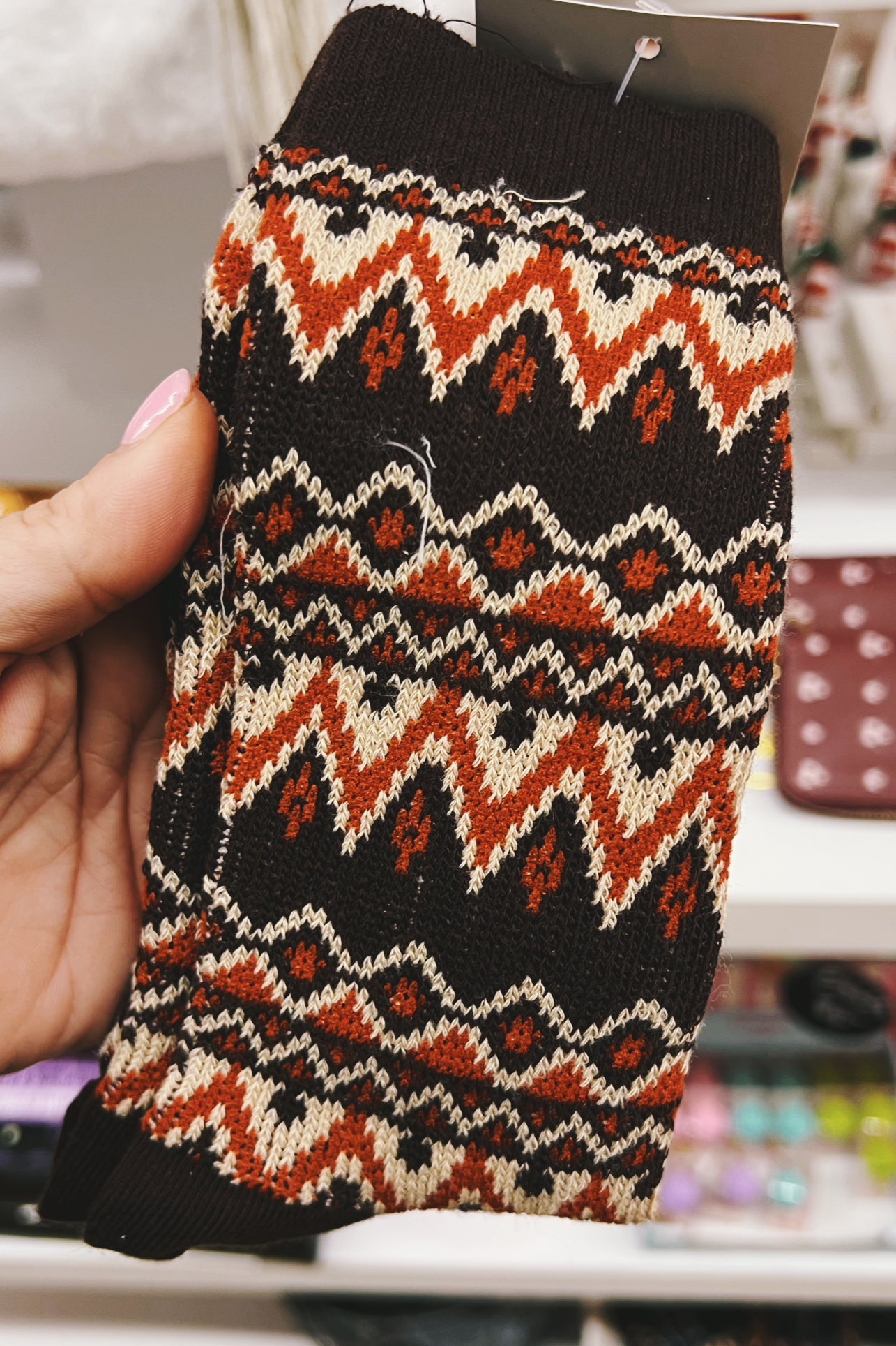 These Tribal Pattern Socks feature bold, ethnic-inspired designs with vibrant colors, perfect for adding a unique touch to any winter wardrobe. With their cozy knit material, these socks offer both comfort and style, making them an ideal accessory for the colder months.