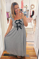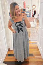 The Estelle Smocked Midi Dress brings playful femininity to your wardrobe with its trendy black and white checkered print. Lightweight and fully lined, it features ruffle elastic straps and a smocked bust accented with a charming bow for a flattering fit. Perfect for sunny days or casual outings, this dress combines comfort and style effortlessly. Add a blazer to dress up or a denim jacket to keep it casual and move into cooler temps.