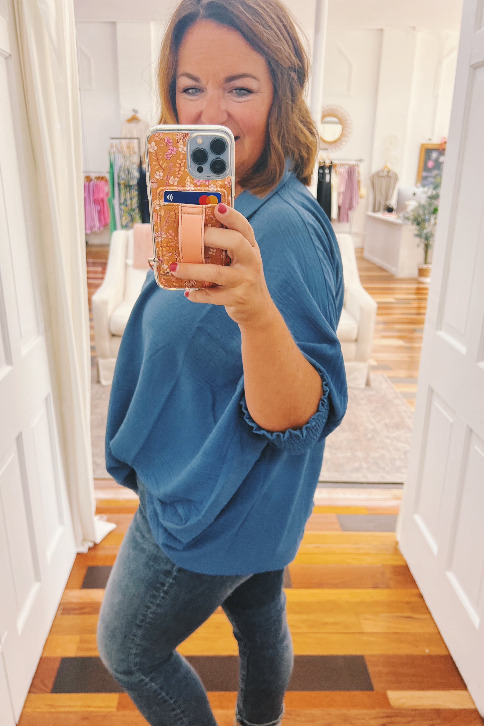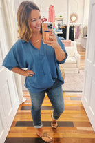 Gertrude Smocked 1/2 Airflow Top Dusty Blue