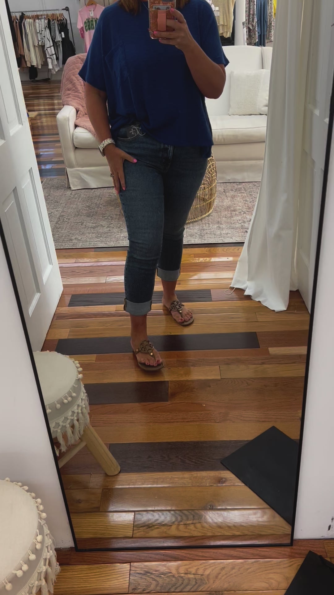 The Irene Cropped Cuffed Jeans offer a comfortable, stretchy fit with a flattering mid-rise design. Featuring a medium wash and clean, no-distressing finish, these skinny jeans can be worn with the hem cuffed or uncuffed to suit your style. Perfect for everyday wear, they provide both comfort and versatility.