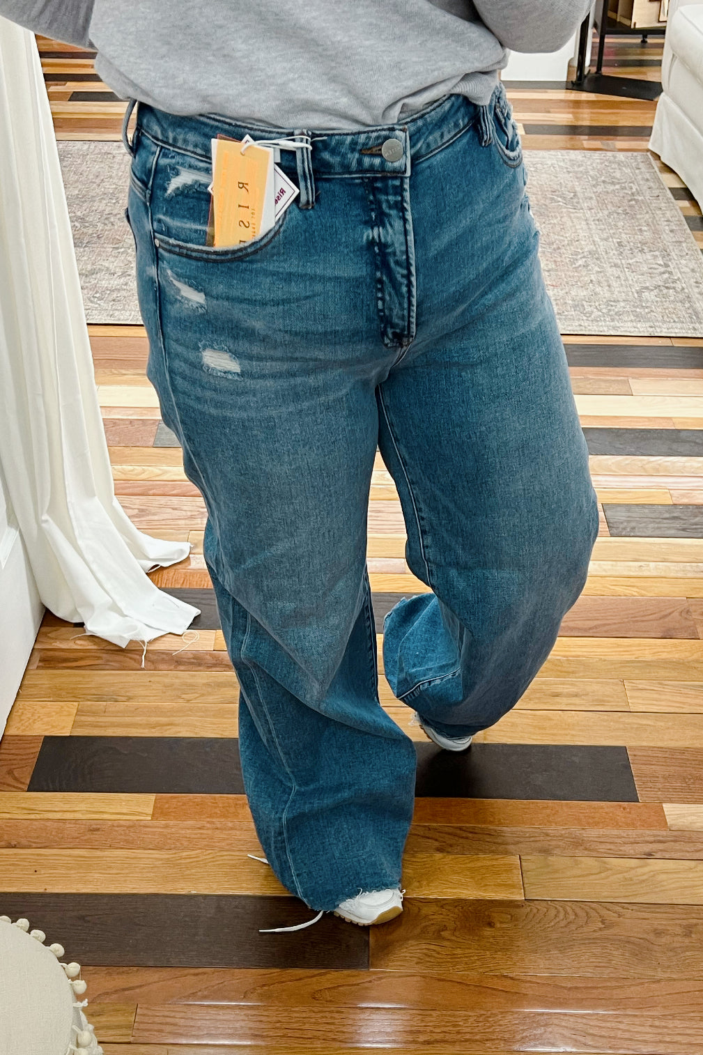 - wide leg medium wash jeans
