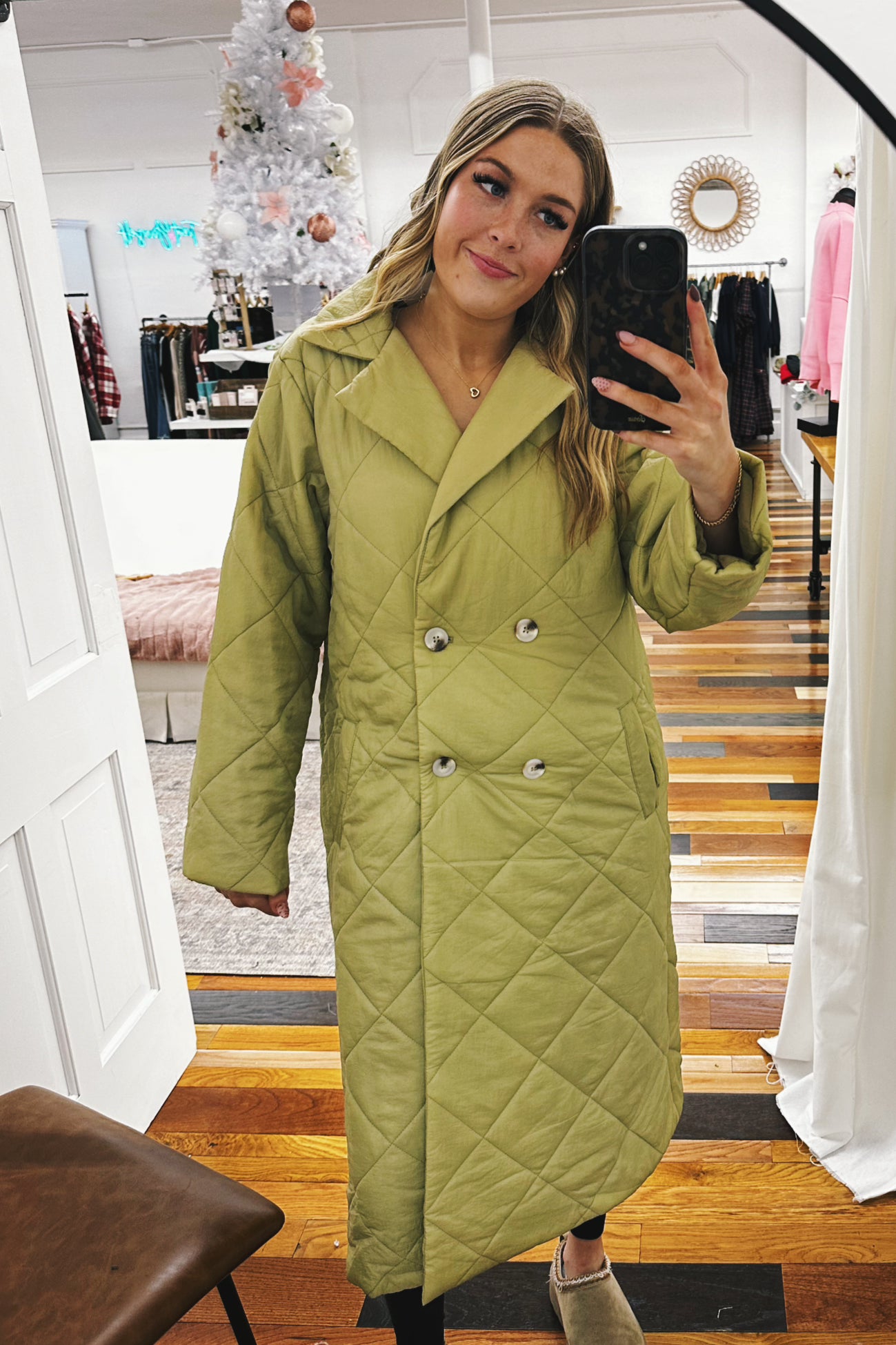 Louise Long Quilted Coat Olive