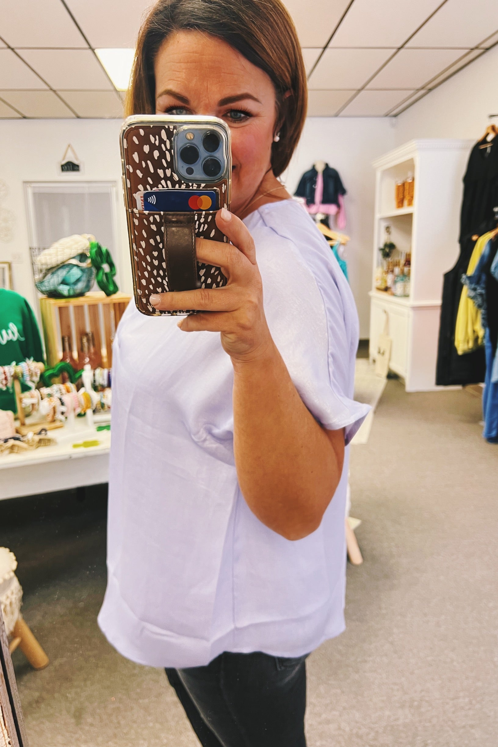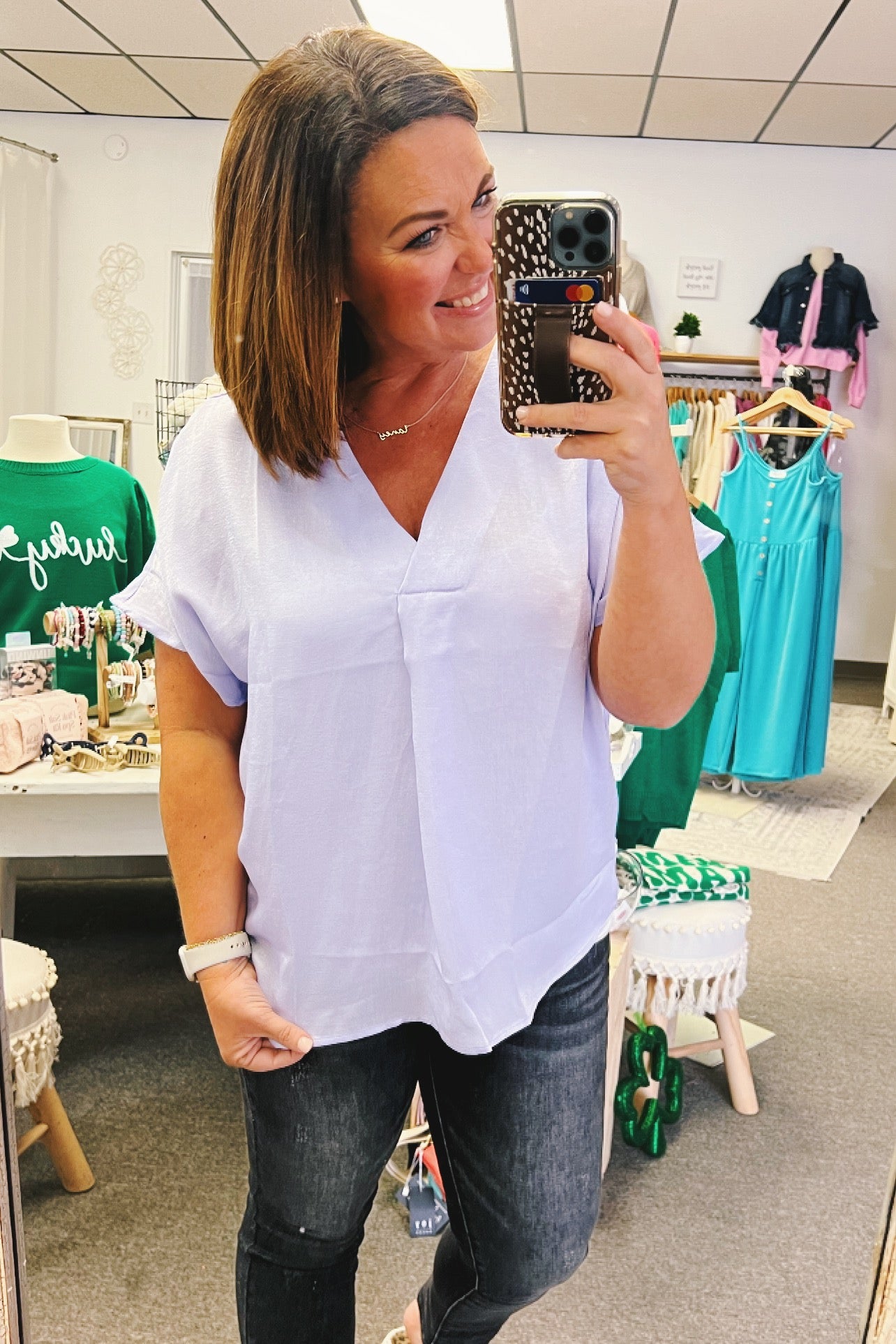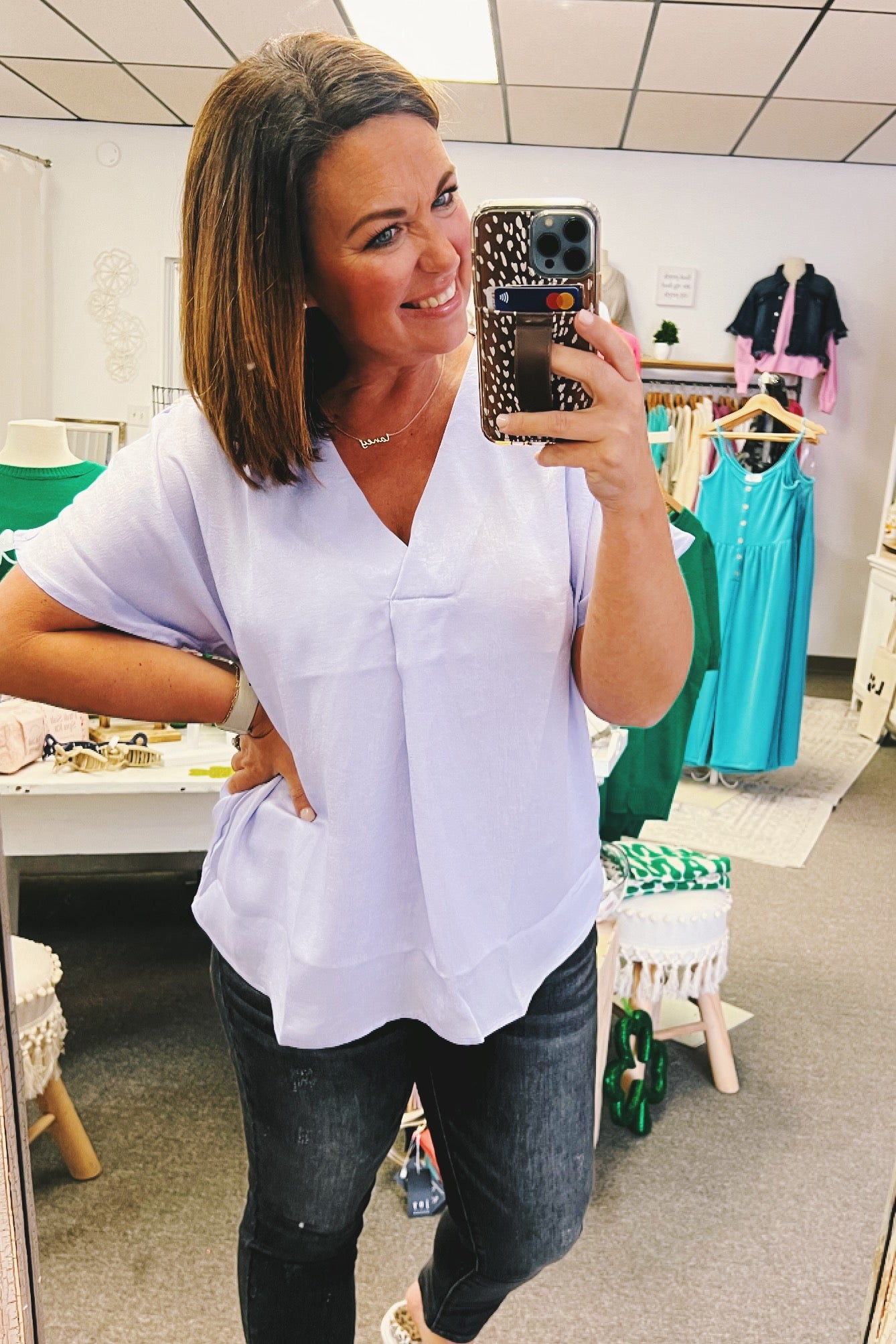 Discover effortless elegance with our Pleat Front V-Neck Top in Lavender! Made of luxurious satin, this blouse features a flattering V-neck and drop shoulder design for a comfortable fit. Perfect for any occasion, this top will make you feel confident and stylish.