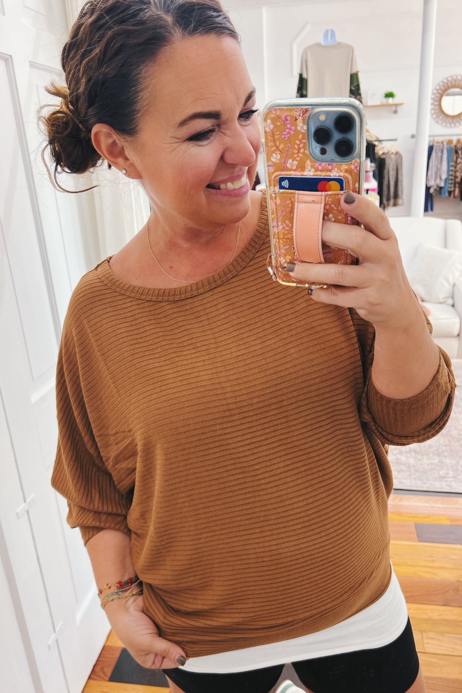 Add a new favorite to your wardrobe with our Anna Ribbed Dolman Top in Deep Camel and Cabernet! Made from ribbed knit for a flattering fit, this classic dolman top offers versatility - dress it up or down for any occasion. So comfy, yet sophisticated with gorgeous fall hues. Make a statement and feel confident wherever you go!