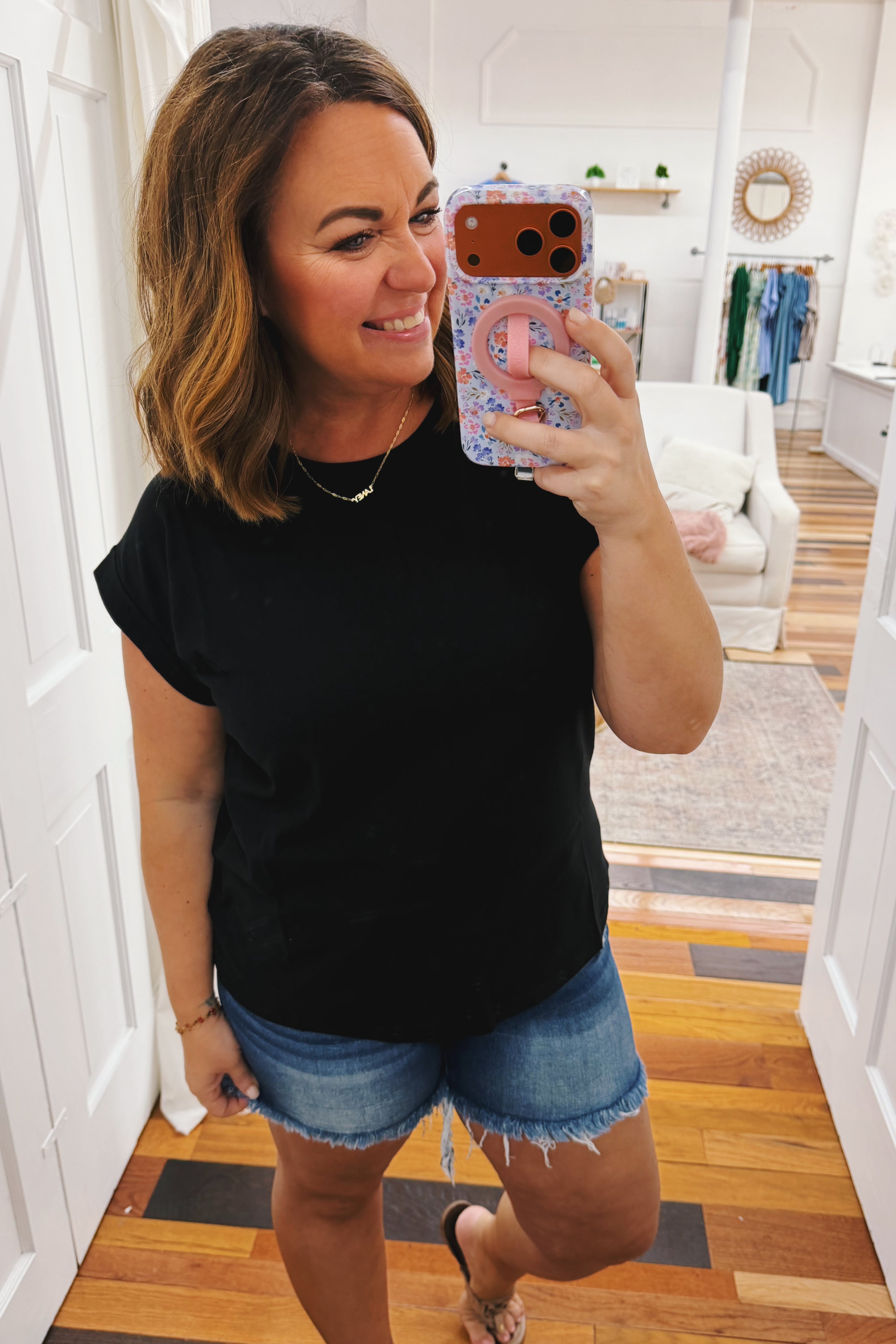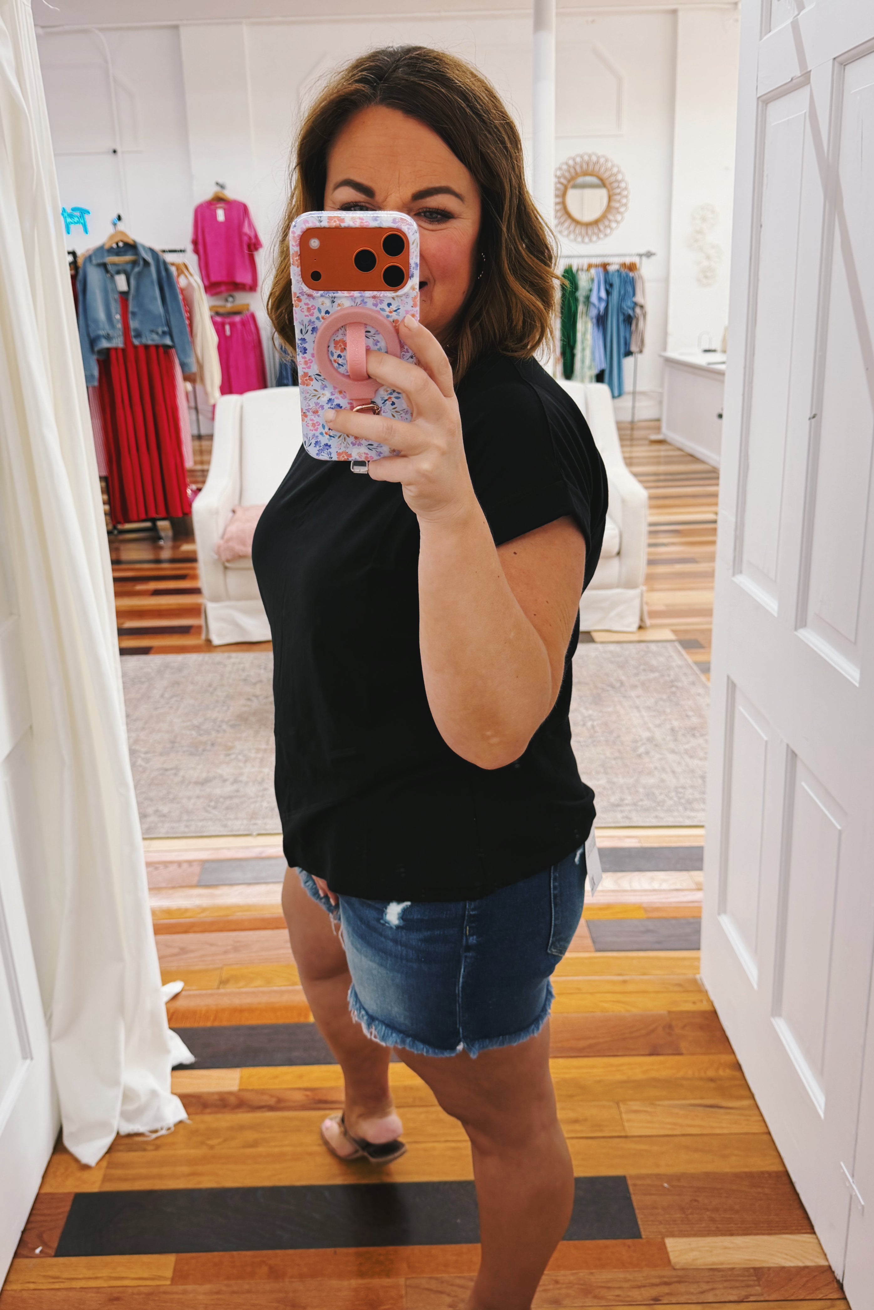 The Betty Basic Tee is a wardrobe staple crafted from premium cotton knit for all-season comfort. Featuring a relaxed fit and rolled cuff sleeves, this classic black tee delivers effortless style that pairs with everything. Soft, breathable fabric makes it perfect for layering or wearing solo. A timeless essential that never goes out of style.