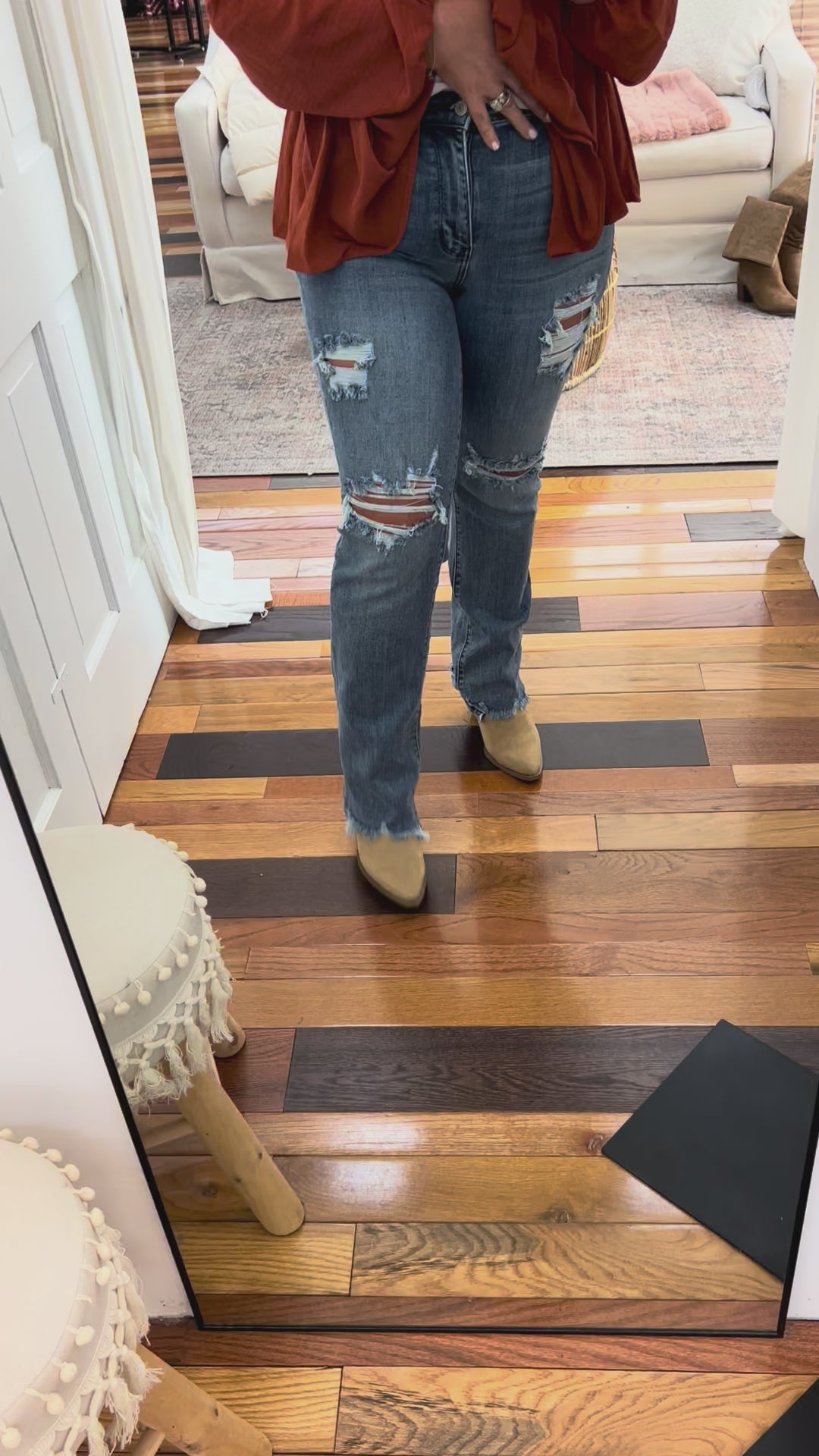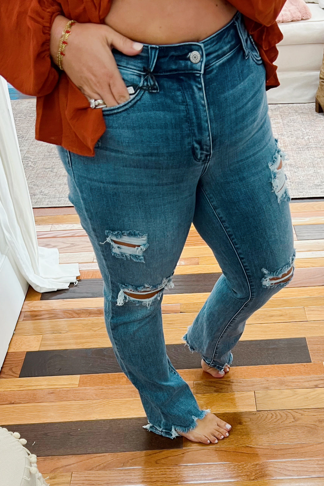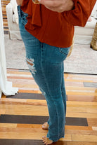 The Chloe Mid Rise Distressed Jeans from Judy Blue offer casual perfection with their distressed detailing and straight-leg, full-length fit. With a midrise and tons of stretch, these jeans effortlessly blend comfort and style, making them a versatile addition to your everyday wardrobe.