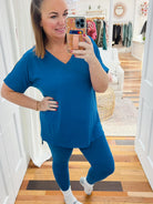 Cue the applause! You just found your new favorite lounge wear! Combination of Audrey Tees and Sylvia Leggings make a whole...Daisy Set!! Year round wear with a denim jacket or slouchy cardigan. It's perfection!