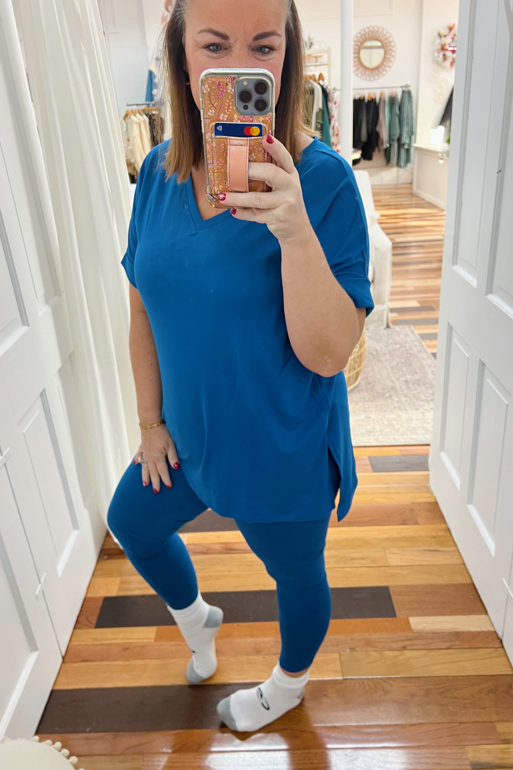 You will love this legging/tee combo for weekend wear running all over town or watching your favorite movies on the couch.