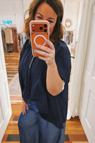 Fiona Zip Front Nylon Top Navy