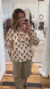- ecru ruffle trim top with flower print