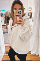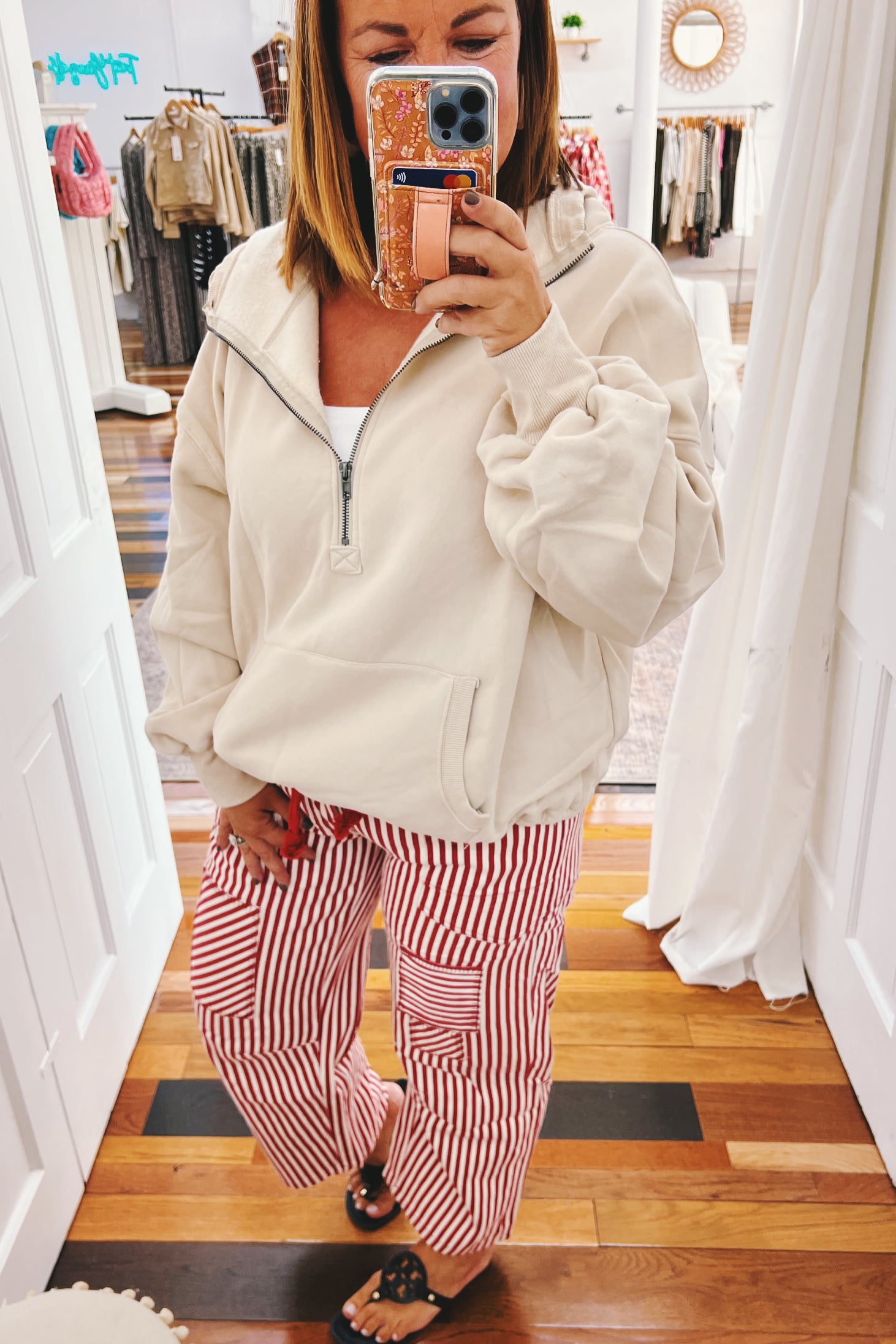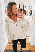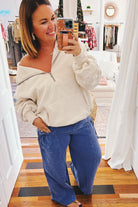 Cozy up in the Judy Half Zip Fleece Hoodie, your new seasonal essential. In a neutral oatmeal hue, this soft and stretchy fleece features a half zip, elastic waist, and an oversized fit that’s perfect for playful layering and all-day comfort. It will be your go-to sweatshirt year round! Layer with a cute vest and head to the pumpkin patch!
