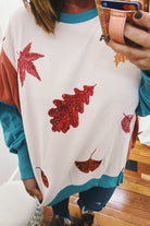 Cozy up in fall’s favorite hues with the Laurel Sequin Leaf Sweatshirt. This oversized, colorblock sweatshirt is crafted from soft and stretchy French terry for all-day comfort. Playful sequin leaf accents add a touch of sparkle, making it perfect for crisp autumn days with a fun, stylish twist. You'll love it with your favorite leggings and sneakers!