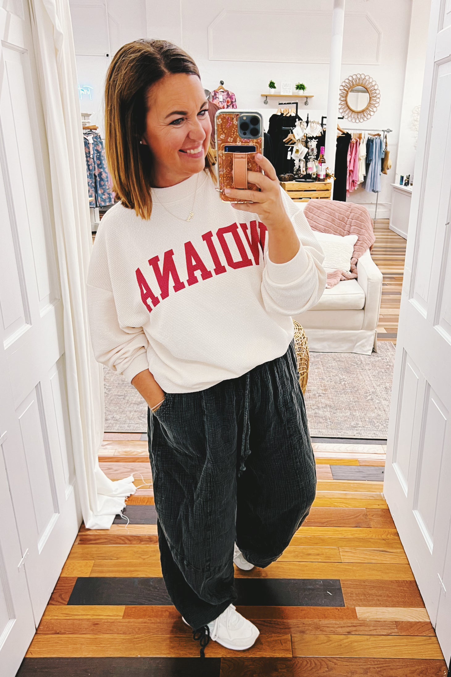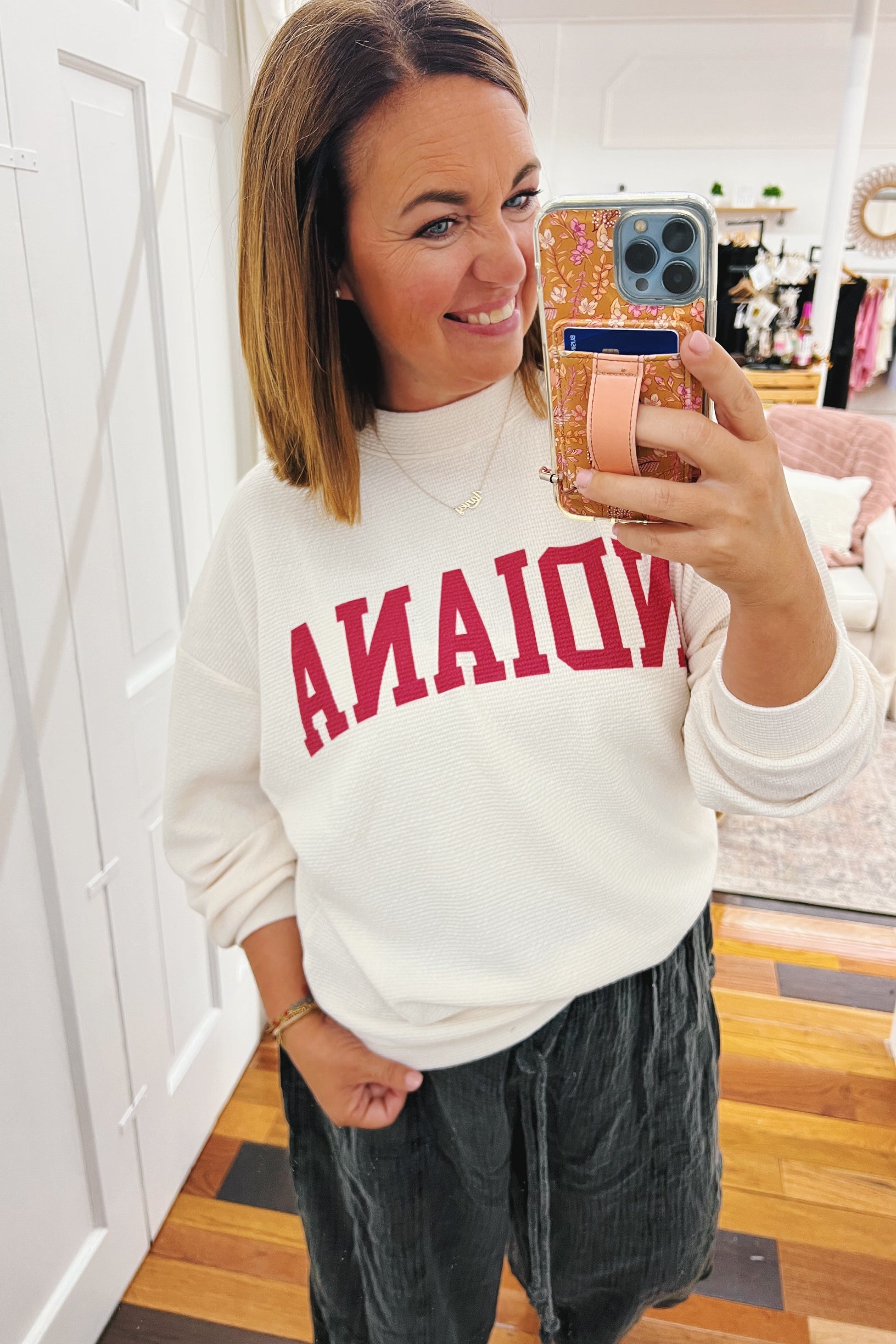 Wrap yourself in cozy clouds with the Madeline Cloud Knit INDIANA Sweatshirt. Super soft and stretchy, it’s perfect for laid-back weekends when comfort is key. Whether you’re lounging or out and about, this casual sweatshirt keeps your vibe effortlessly playful and relaxed.
