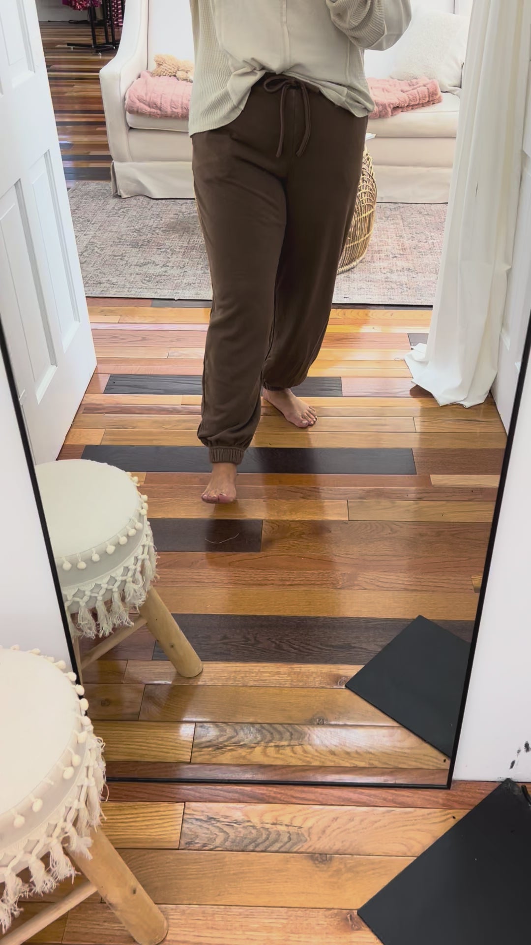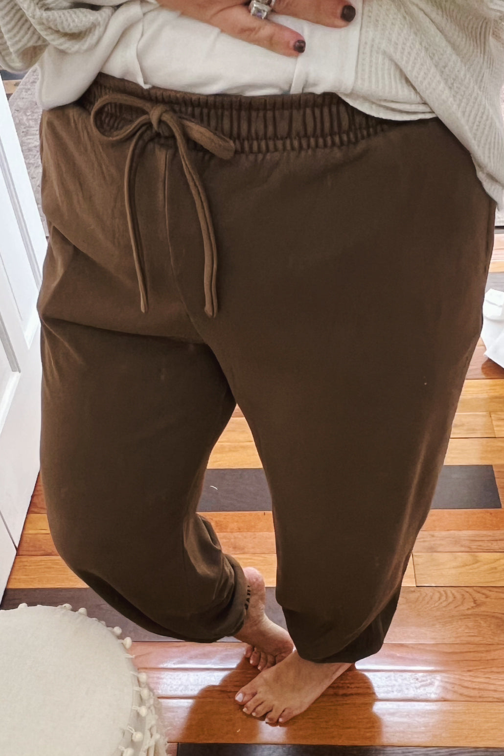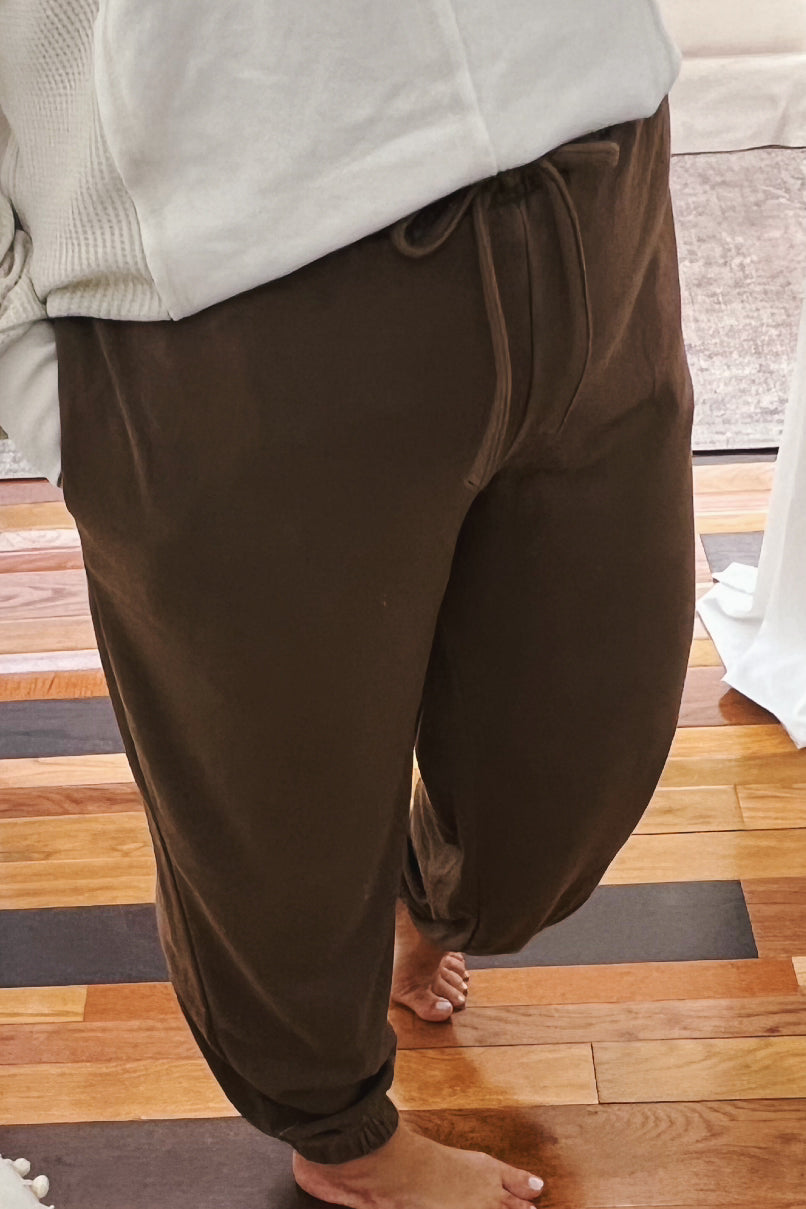 - washed french terry joggers in brown