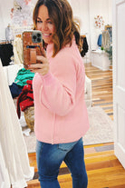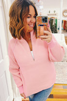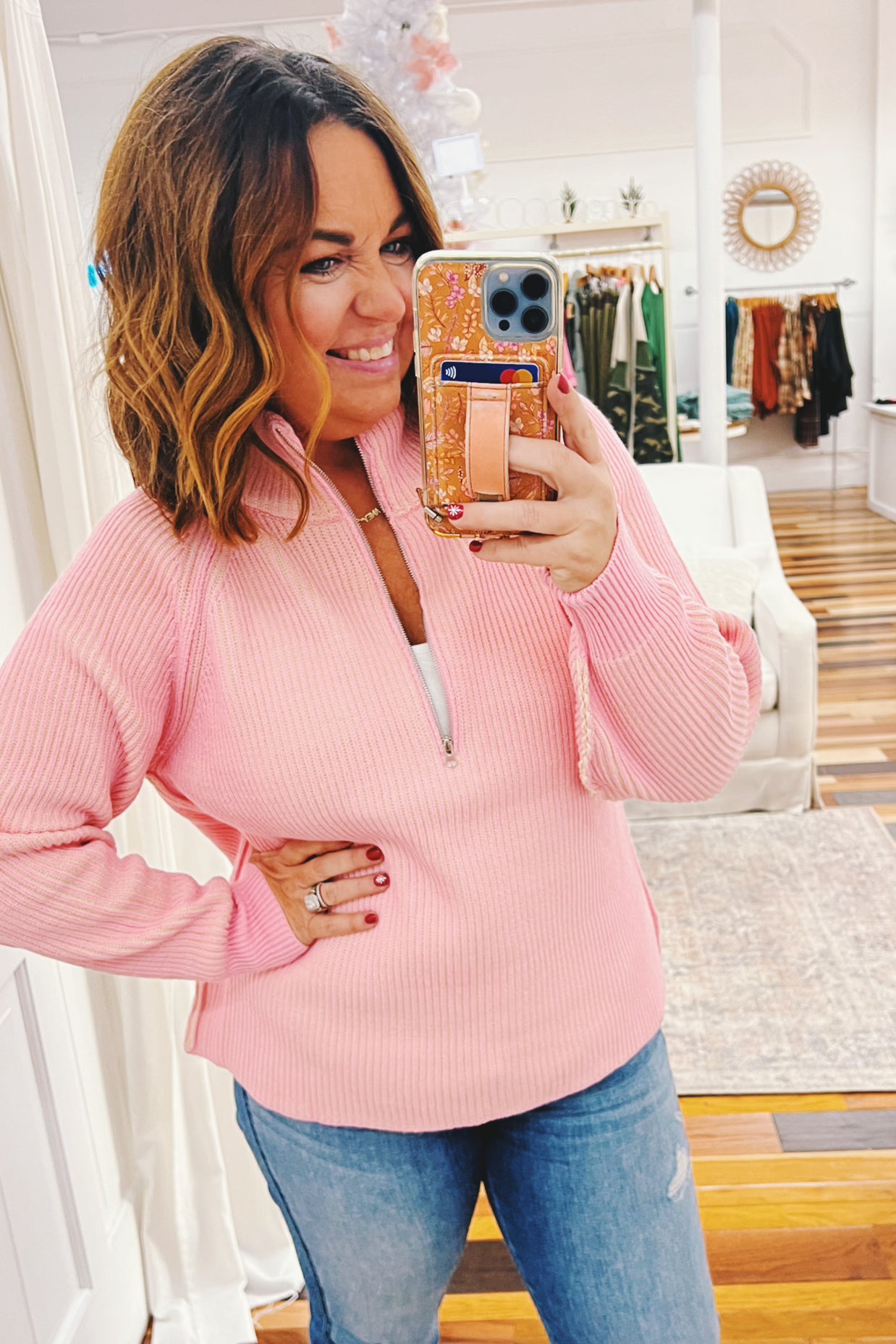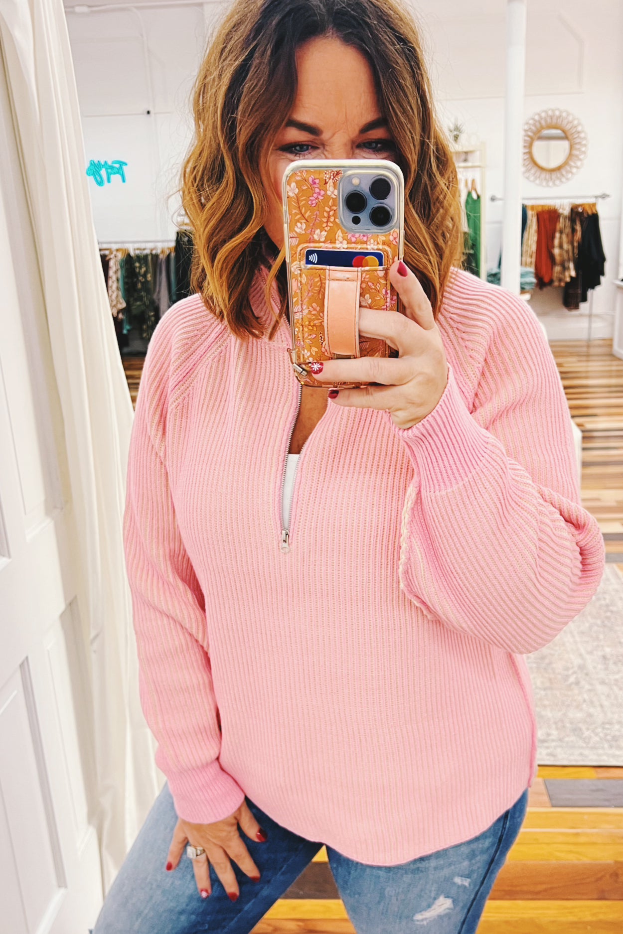 Meet the Nora 1/4 Zip Sweater, a two-tone knit masterpiece designed for effortless comfort. The dark pink and taupe knit with the slouchy oversized fit and raglan cut work together with the mock neck for the cutest new sweater on the block. Soft and stretchy fabric hugs your curves without the bulk, delivering that perfect balance of cozy warmth and lightweight ease. Whether you're layering for the season or wearing solo, this sweater becomes an instant favorite for its versatile style and undeniable comfort.