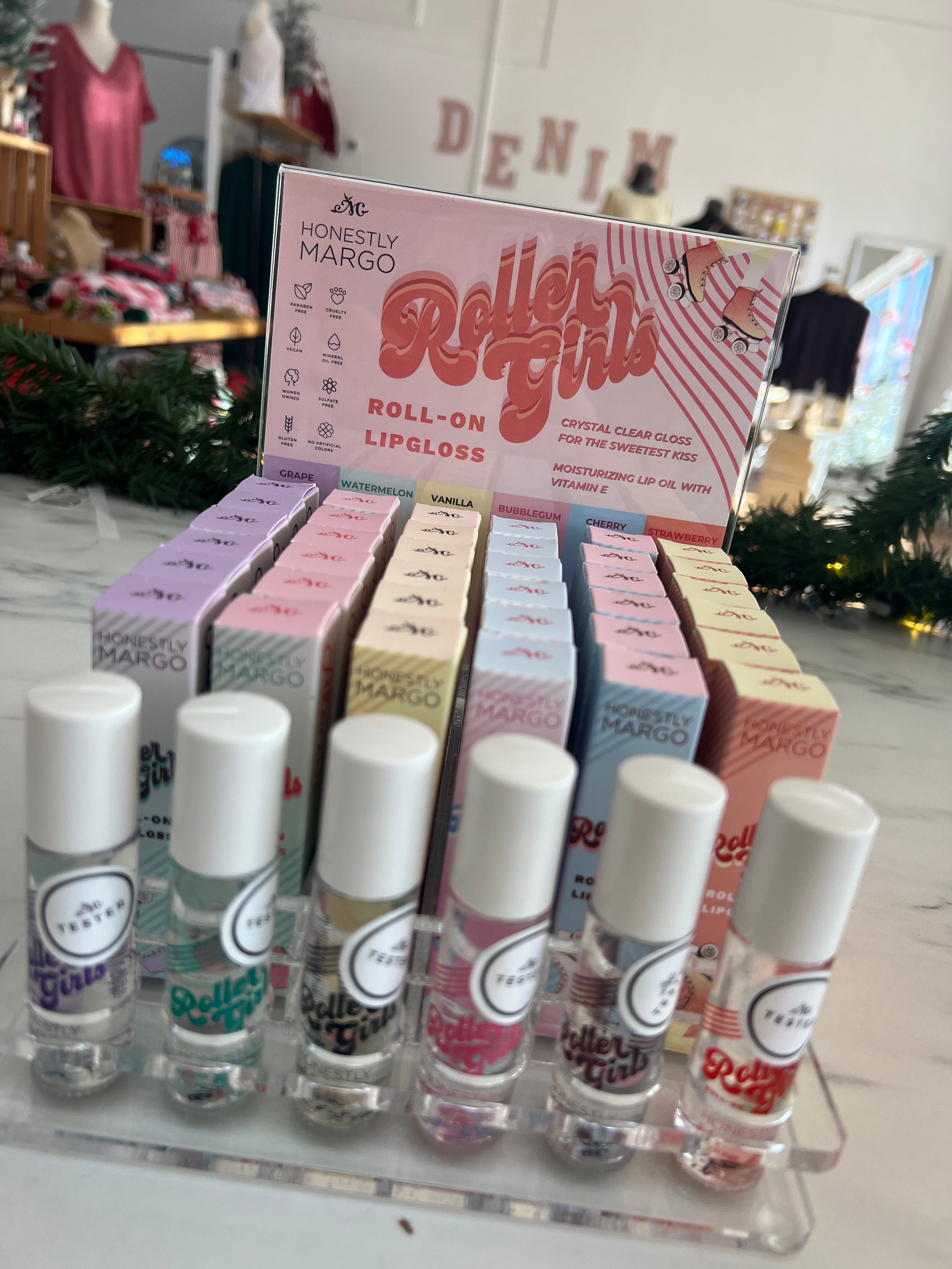 When one isn’t enough and your inner retro girl needs to come out, the Roller Girls Roll On Lipgloss Set. Shine on with full-size Roller Girls Roll-On Lipgloss. Formulated with vitamin E to moisturize and natural flavors for the sweetest kiss.