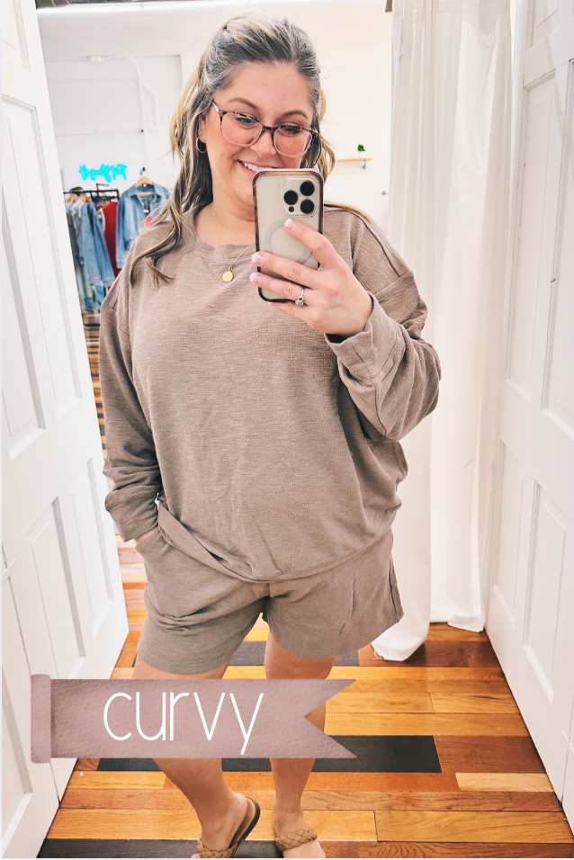 The Sandra Slub Knit Set in Cocoa is your go-to for effortless, trendy style. This two-piece set features a textured slub knit banded slouchy top paired with relaxed shorts in a warm milk chocolate color. The slouchy silhouette and soft knit fabric create a cozy, laid-back vibe perfect for casual days and long travel days, too. Mix and match with your favorite basics, or wear together for a coordinated look that feels both cute and put-together.